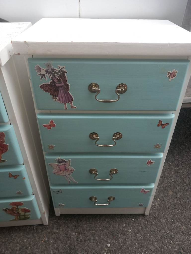 Abit rough in places could benefit from repaint but ideal robust sets of drawers for kids room