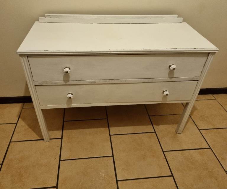 4 Drawer chest painted in Frenchic Nougat & top washed & sealed with Tuff Top Coat Free local delivery 🚚 white ceramic handles added.