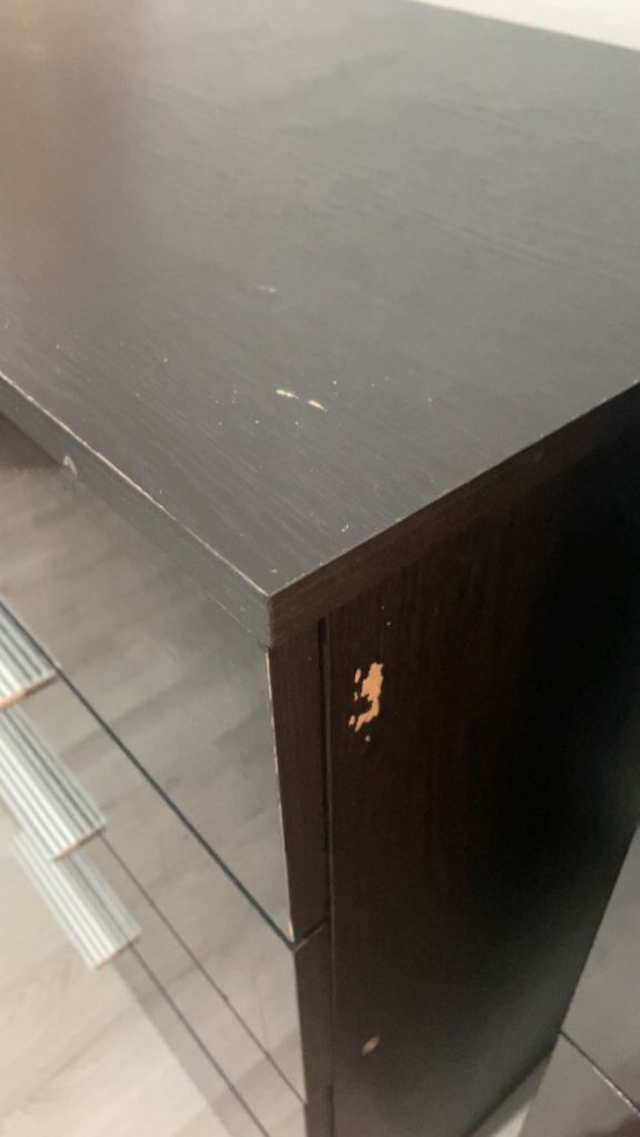Some wear and tear scuffs on the smaller drawers, otherwise great condition