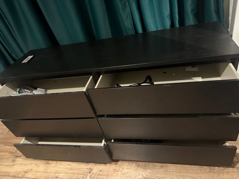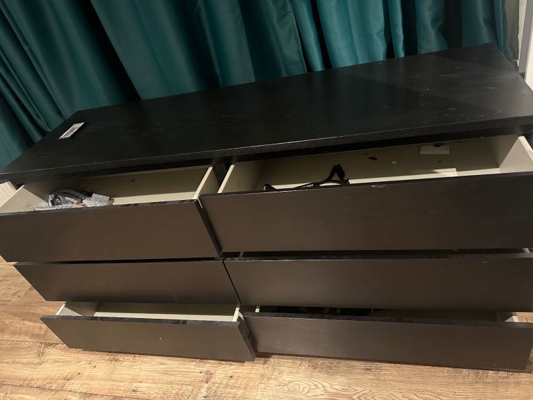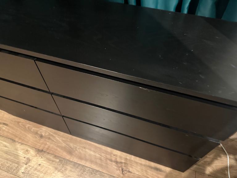Modern black 6-drawer chest of drawers in good overall condition. Clean, sturdy, and all drawers open and close smoothly.