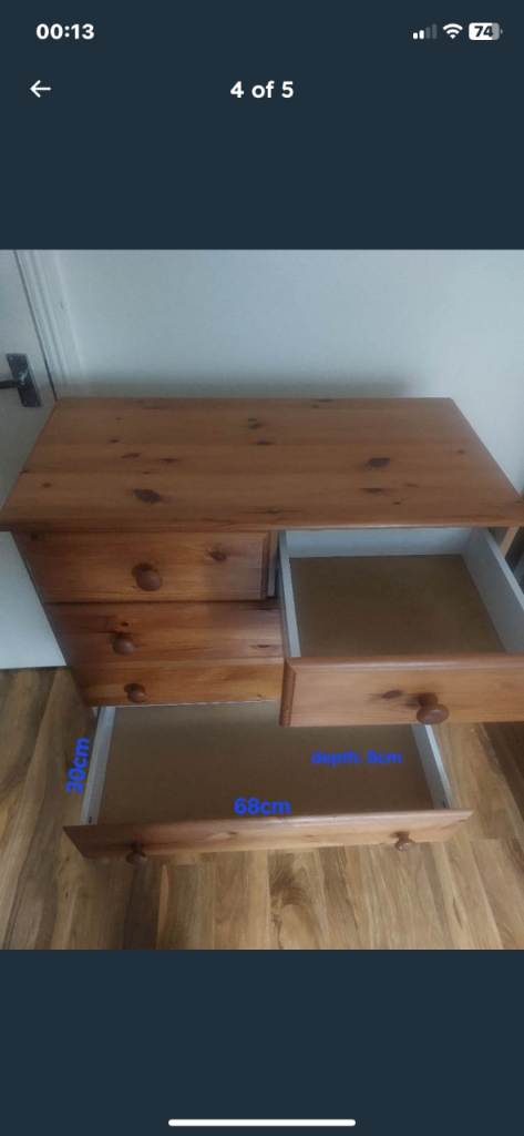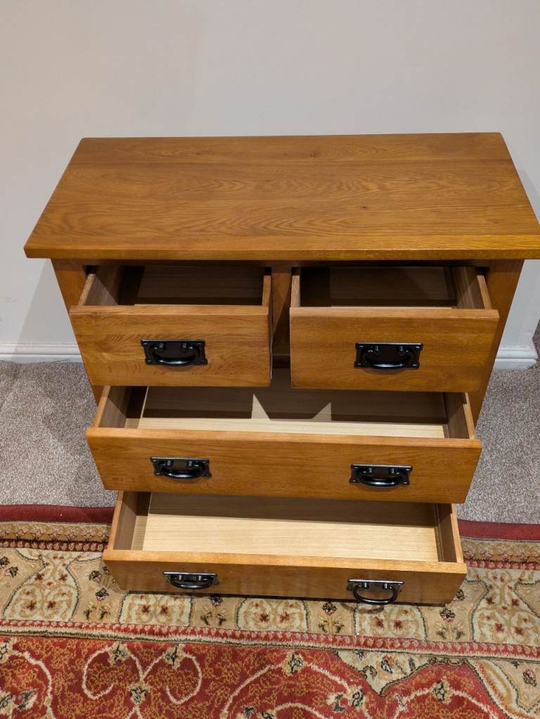 This 4 drawer chest of drawers is perfect for the bedroom or as a sideboard with 2 full size drawers for larger items and 2 upper drawers for smaller items.