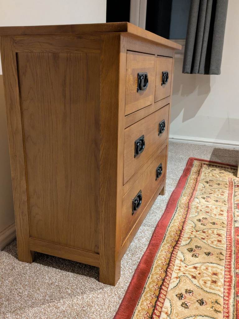 Brand New Grade B Small Oak Chest of Drawers / Sideboard.