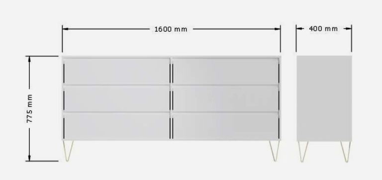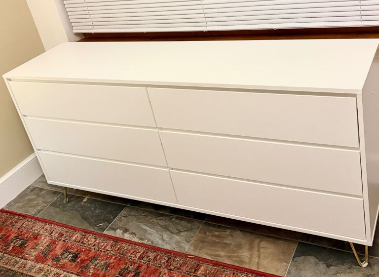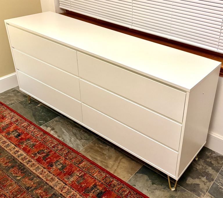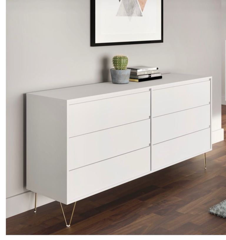 New Modern 6 Chest of Drawers / White Cabinet with Hairpin Legs