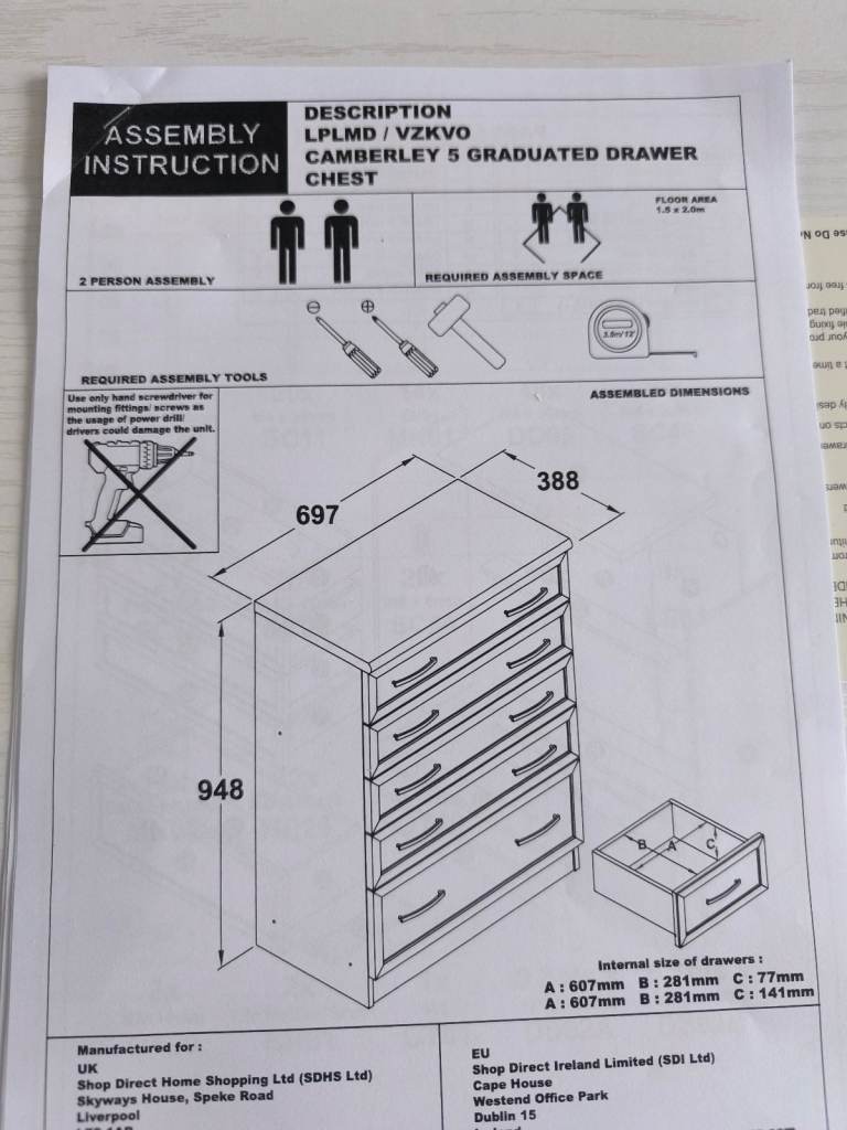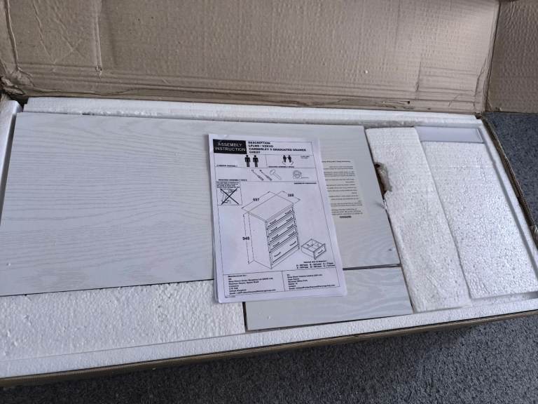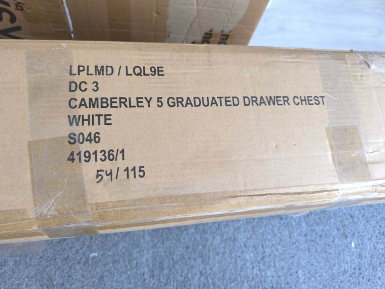 Brand new, flat packed Camberley Graduated Chest of 5 Drawers , White