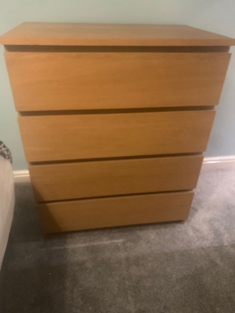 Wooden chest of 4 drawers with plastic handles in very good condition pick up only Swinton area please no time wasters cash only on collection
