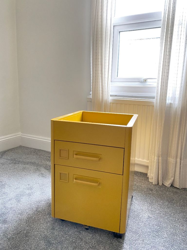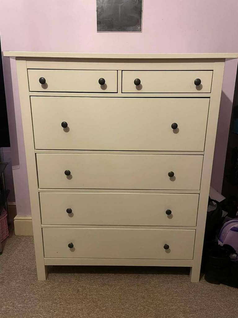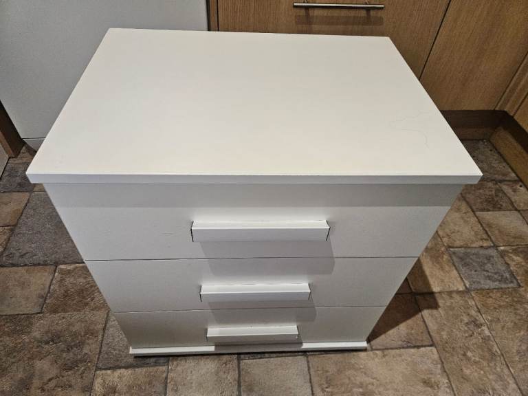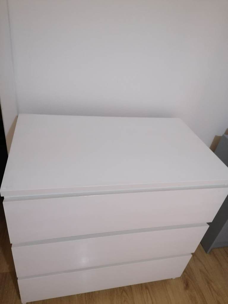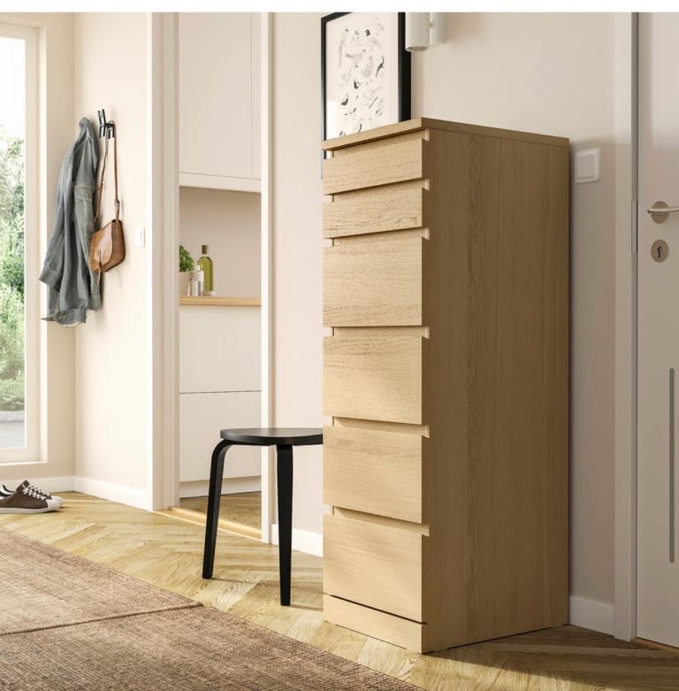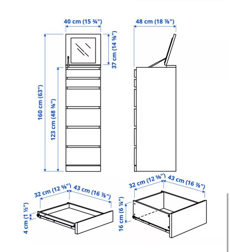 Chest of 6 drawers, white stained oak veneer/mirror glass, 40x123 cm