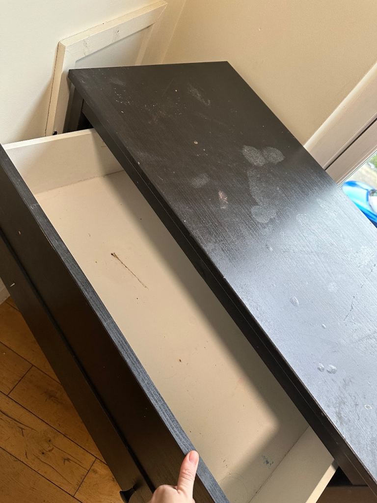 A few of the knobs have falled off as pictured, but if you could fix that would be a fully functioning good quality chest of drawers!