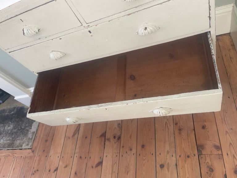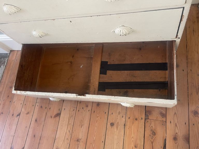 drawer was cracked so we have put some tape over to secure. Has been well used in our daughter’s room and now needs a new home. Collection from Rogate near Petersfield.