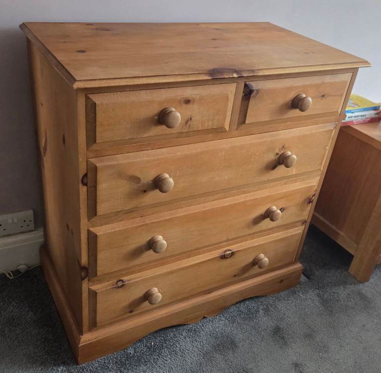 5 drawer chest of drawers with excellent storage as shown in photos. Drawers all sound and work well.