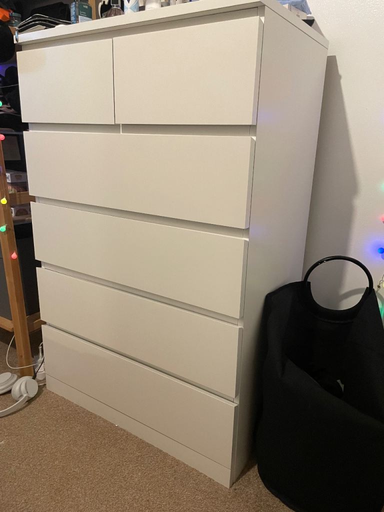 Chest of drawers for sale. 6 drawer Ikea malm set. One of the drawers sits slightly lower on one side but aside from that they’re in good condition. Selling as moving house so need gone asap. Buyer must collect and remove.