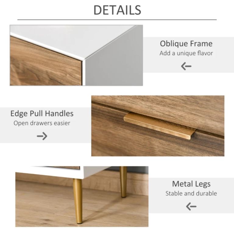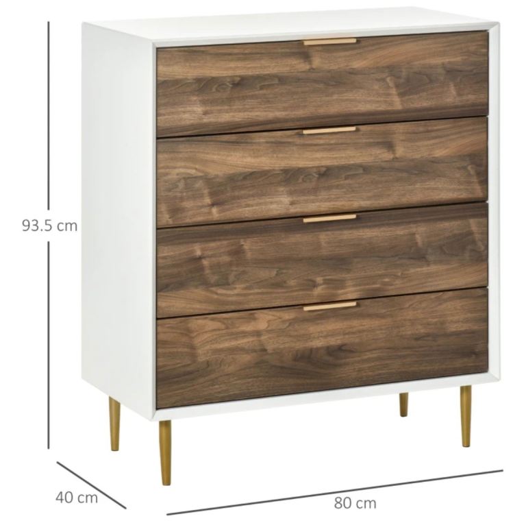 Stylish chest of drawers with the combination of white and walnut colour.