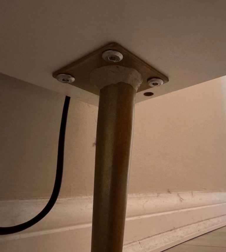 The back right leg broke but has been repaired with extra strong glue and has remained stable for the past 3 years, we are just careful to lift it and not drag it whenever moving it.