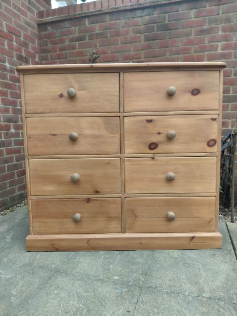 Chest Of Drawers 8 Solid Pine Large Refurbished