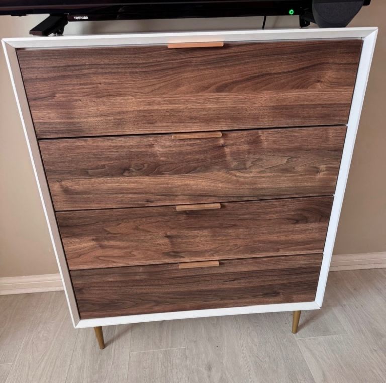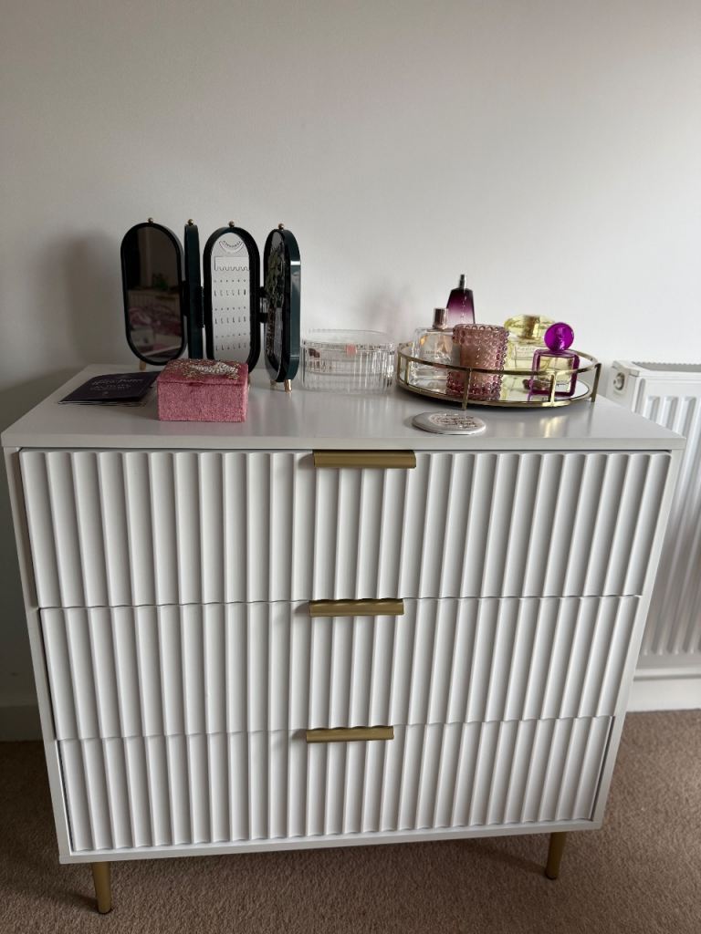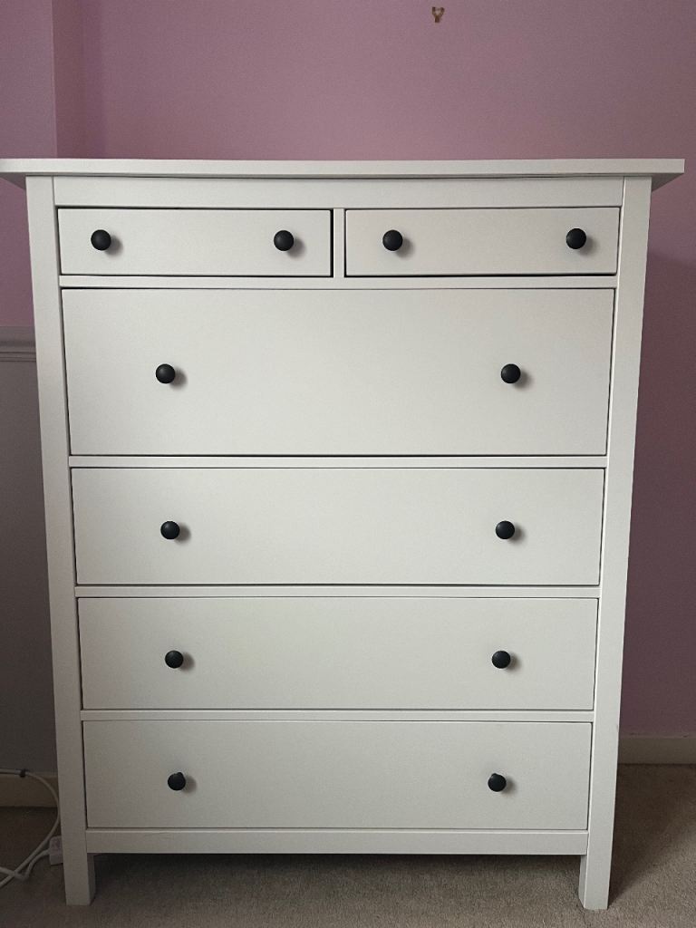 Ikea Malm chest of drawers. White stained oak. Bought early December but unfortunately does not fit my space and can't keep it. With white gloss at the top.