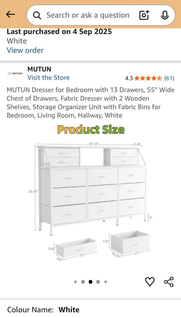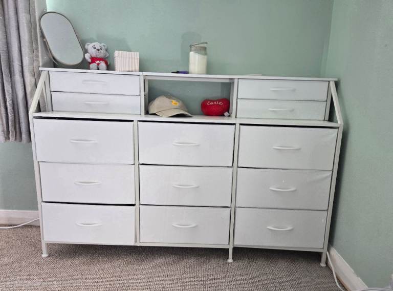 Dresser with 13 Drawers, 55” Wide Chest of Drawers, Fabric Dresser with 2 Wooden Shelves, White