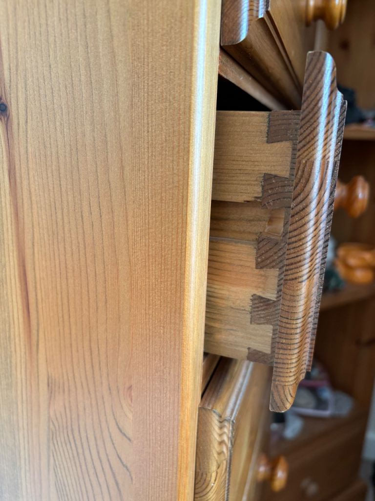 High quality construction with dovetail joints, solid pine wood throughout. Smooth running drawers.
