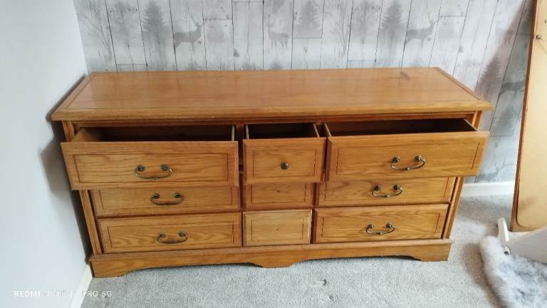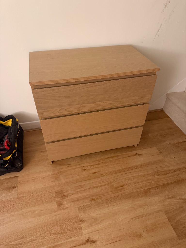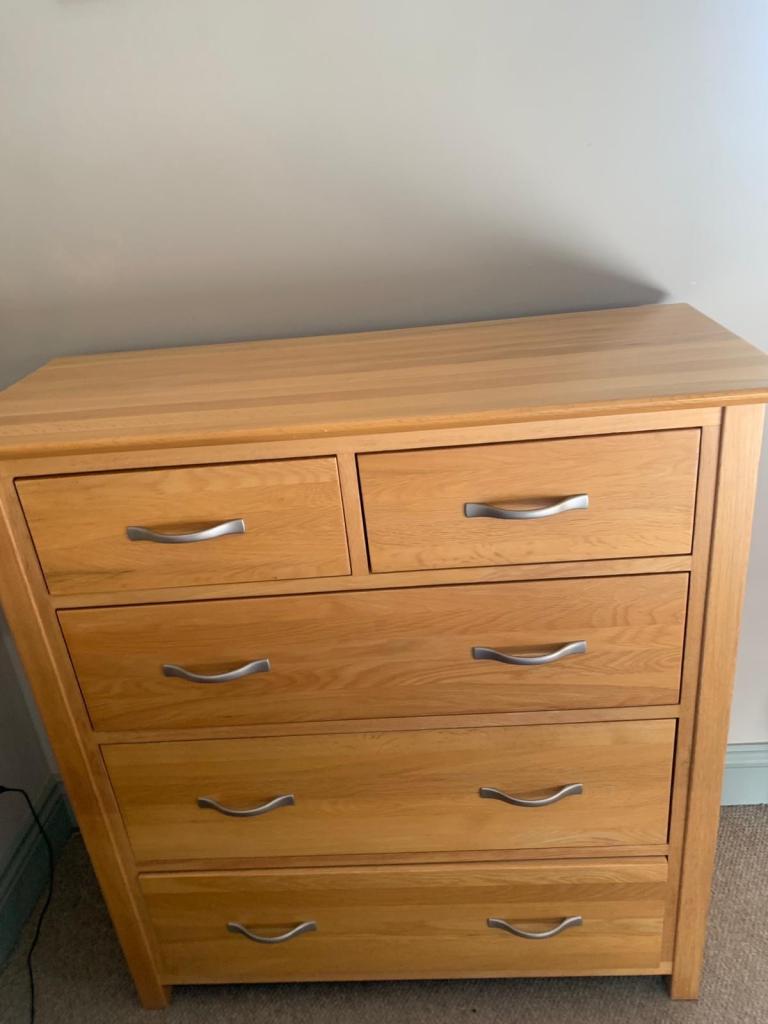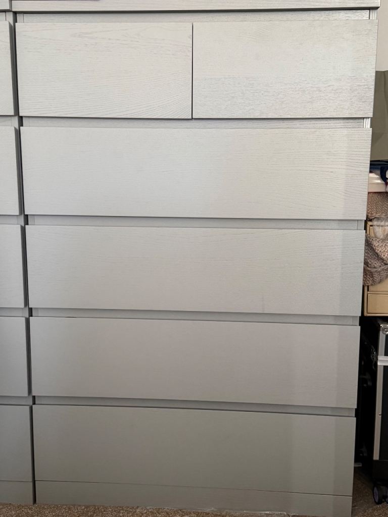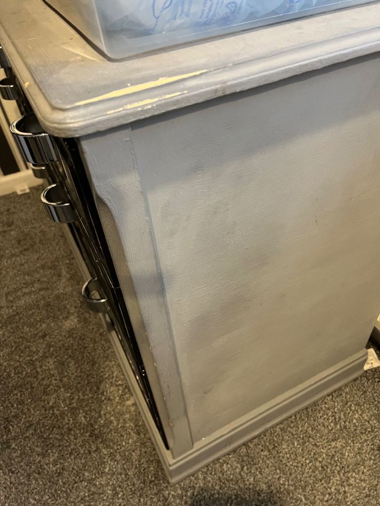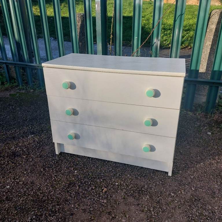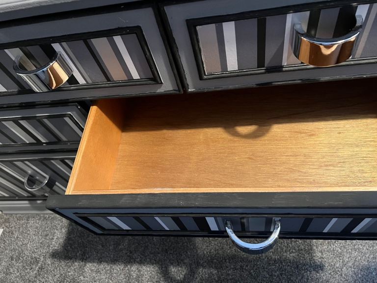 Grey, and stripe chest of drawers. Top needs repainting. Solid, not flat-pack! Collection only.
