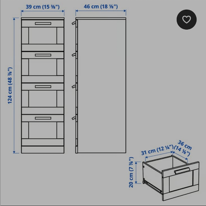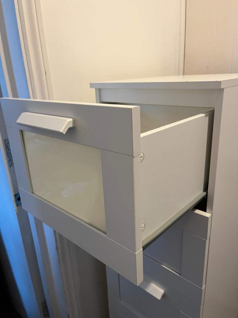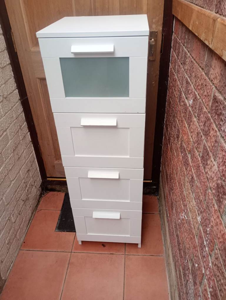 IKEA BRIMNES tall chest of 4 drawers, white/frosted glass, 39x46x124 cm