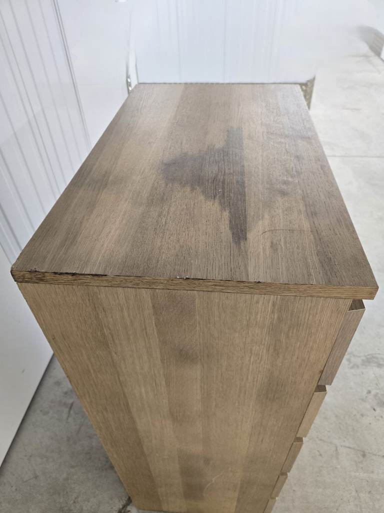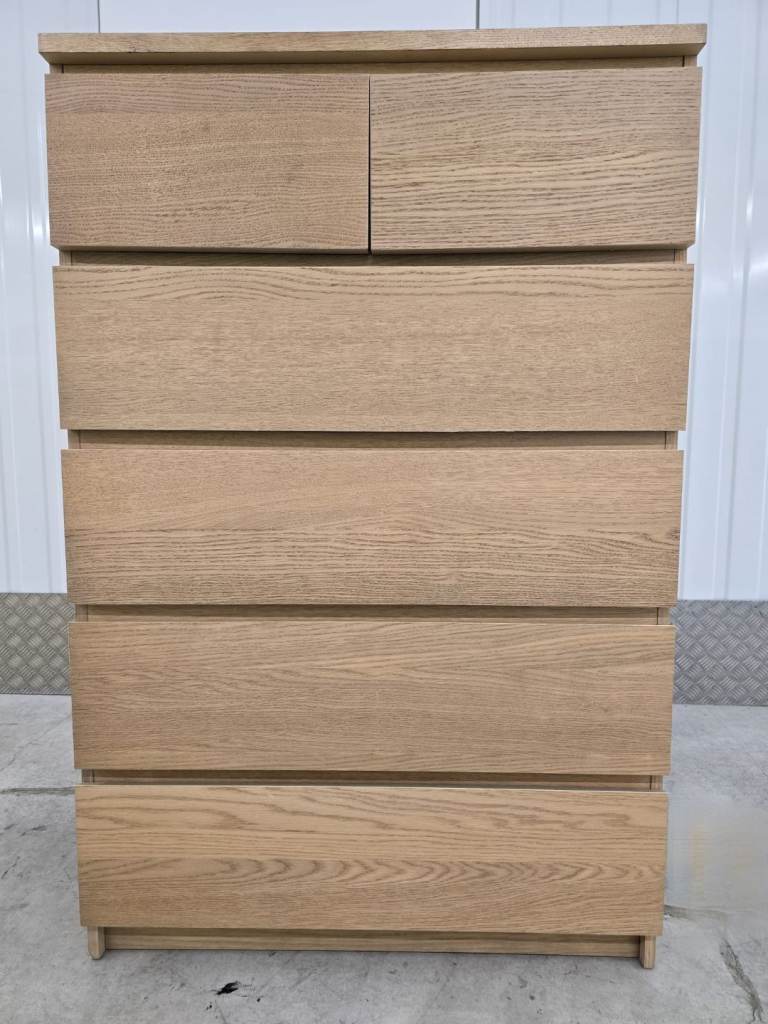 IKEA malm chest of drawers white stained oak used good condition stained mark on top but will be covered under the black glass no other issues fully functional plenty of storage left