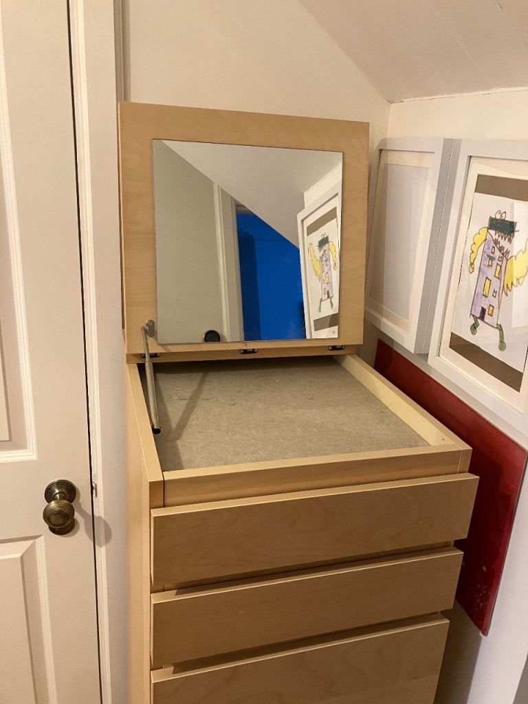 Malm 6 drawer (4 large and 2 small) unit with lift up mirror on top. In birch veneer.