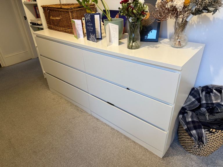 Posting for 9+ yearsIKEA MALM White Chest of 6 Drawers - W160xD48cm - PERFECT CONDITION - Collection Central London