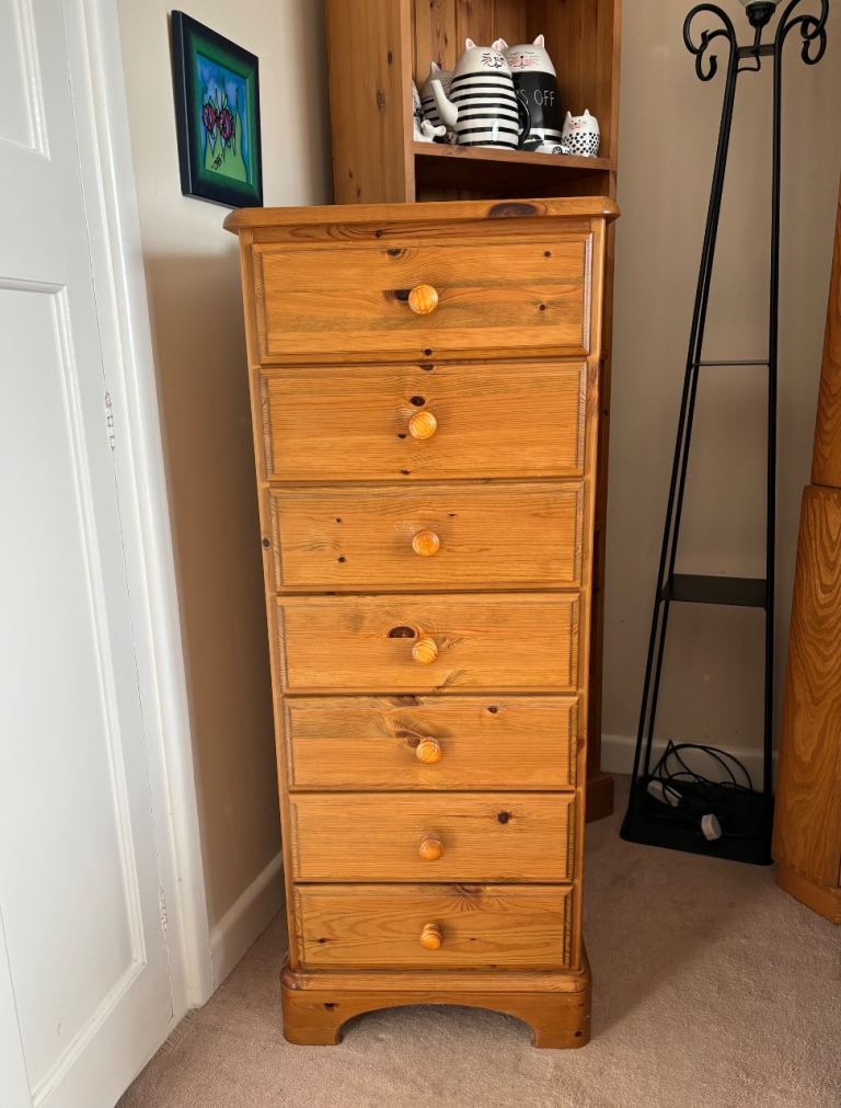 Chest draw with 6 compartments with good amount of storage does have signs of wear and tear on the side.Overall decent condition