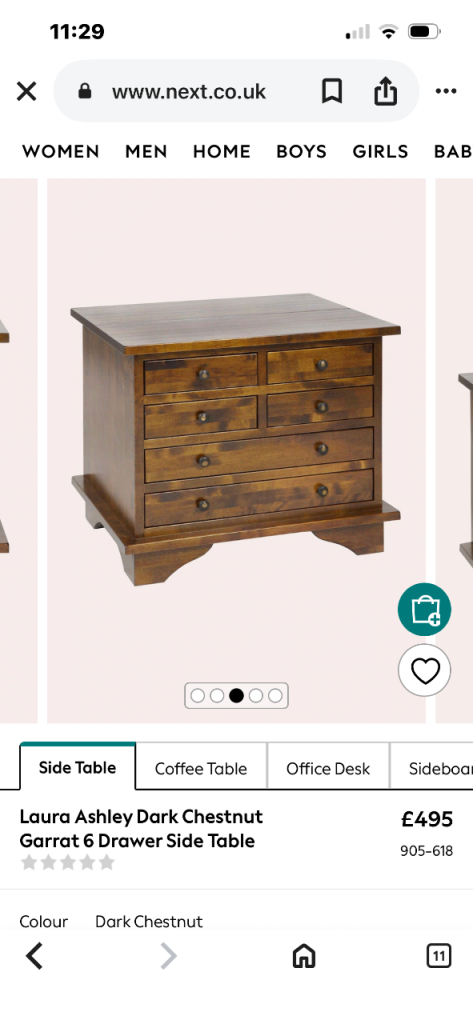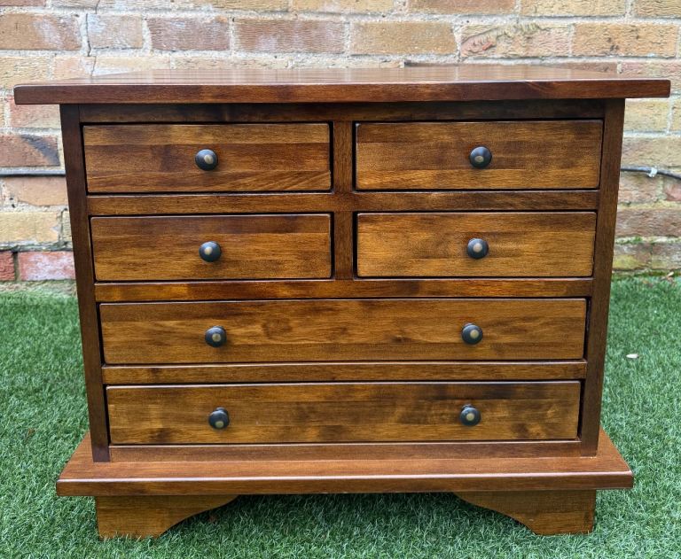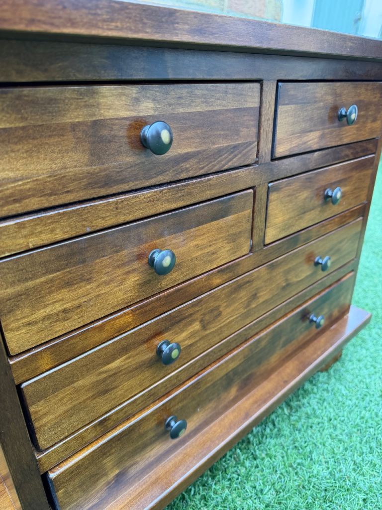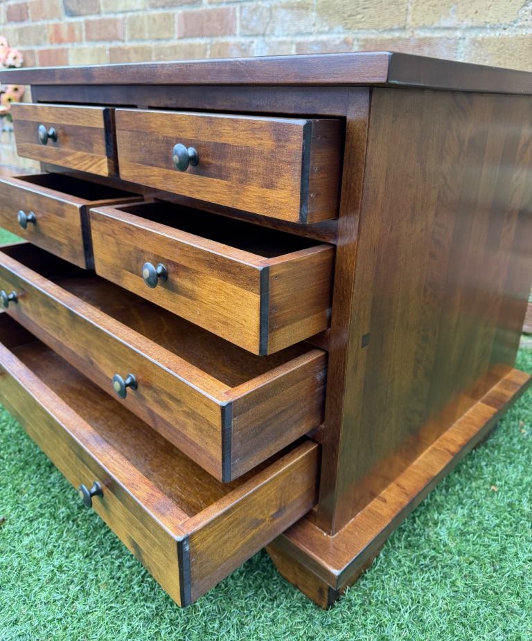 Laura Ashley Garrat 6 Drawer Side Table Lamp Table Dark Chestnut Wood