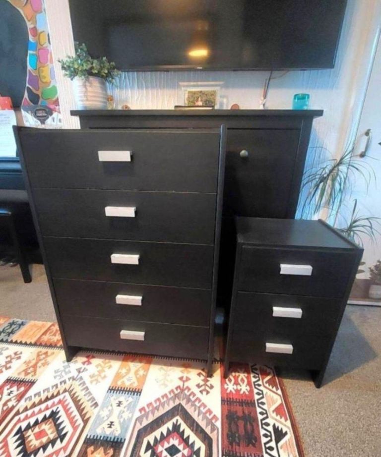 Lovely 2 x Match Black Chest Drawers(3 drawers and 5 drawers) all drawers are fully working runs smoothly.