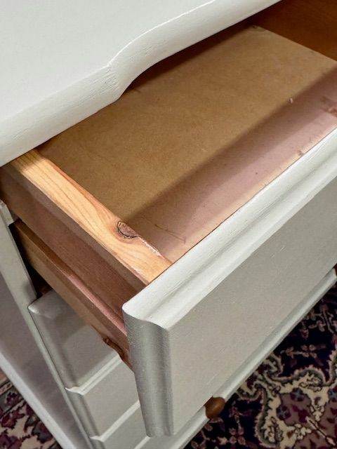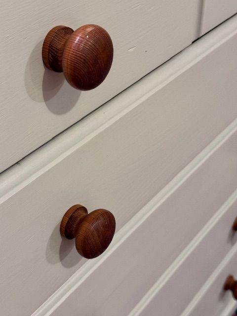 Pine handles. All drawers open and close smoothly.