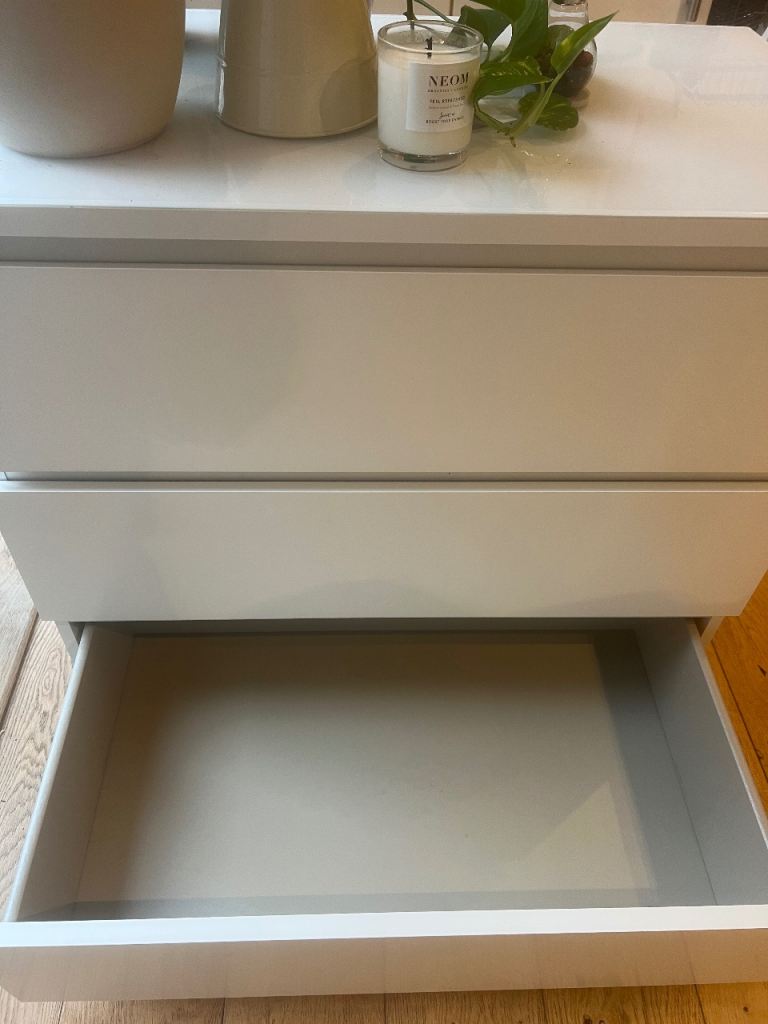 Selling a chest of 3 drawer from IKEA (Malm 3 drawer), retails for £79. Includes a glass top from IKEA for extra protection, retails for £19.