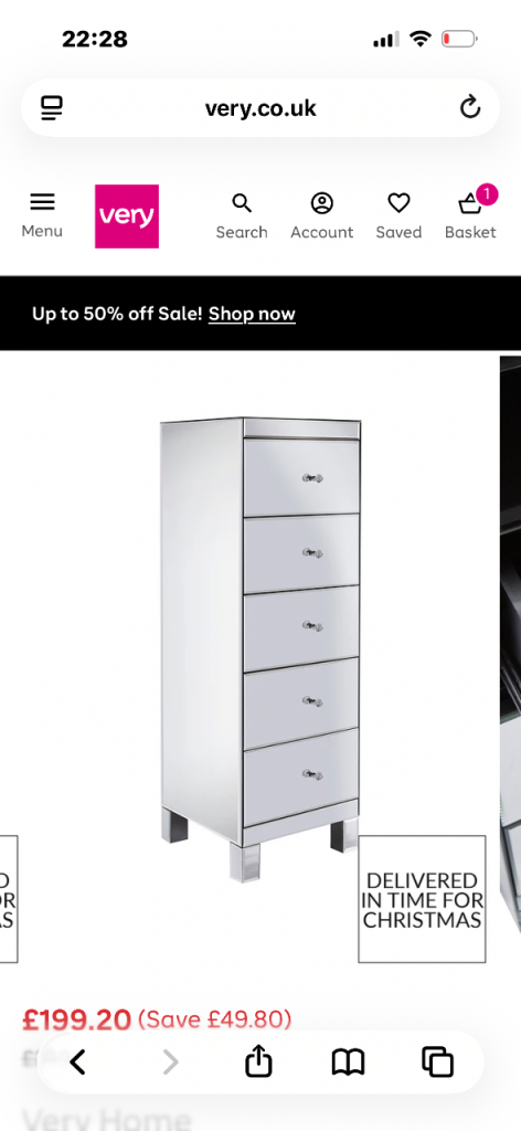 Its tall, space-saving design flaunts a mirrored glass finish that draws in the surrounding light and splashes it back out into the room, enhancing the colours of your décor while creating a brighter, deeper space.