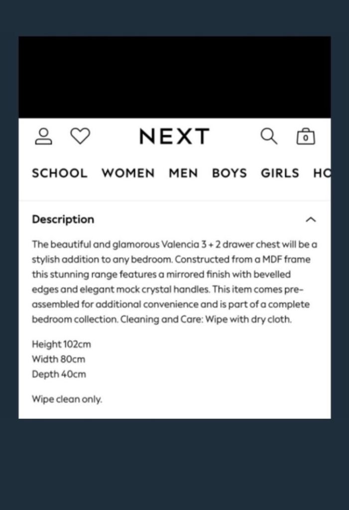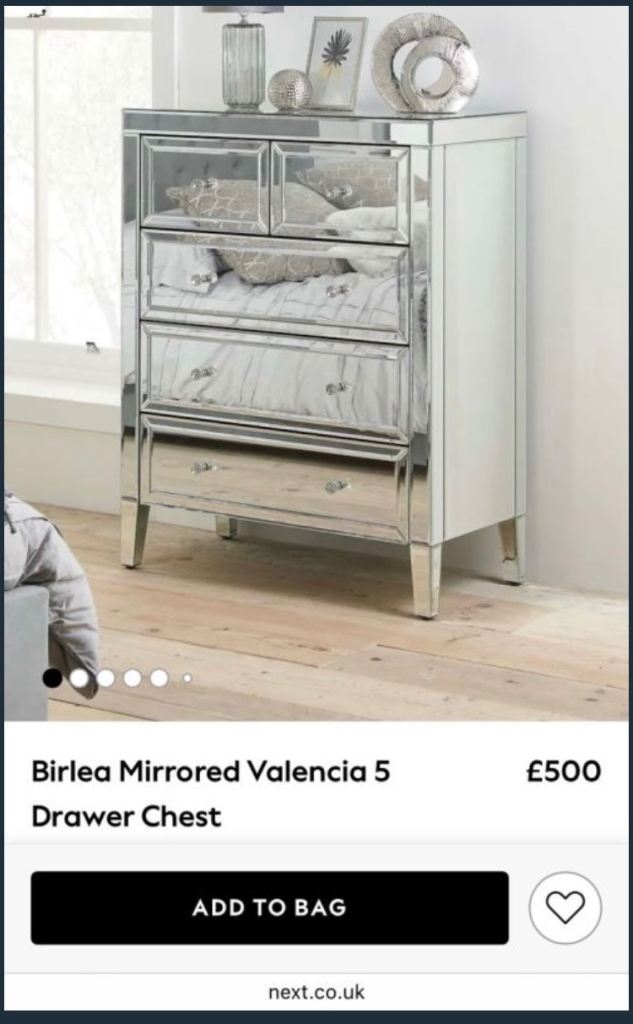 Bought from Next, Valencia mirrored 5 drawer chest by Birlea. See photos.