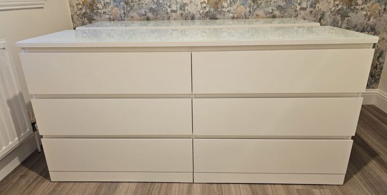 • 6 smooth-gliding drawers (4 smaller on top + 2 larger at the bottom)