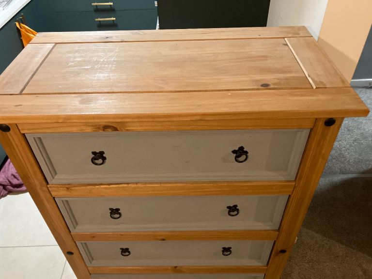 Nicely made wooden chest of drawers, good standard although one handle loop fallen off is still with draws so can be put on