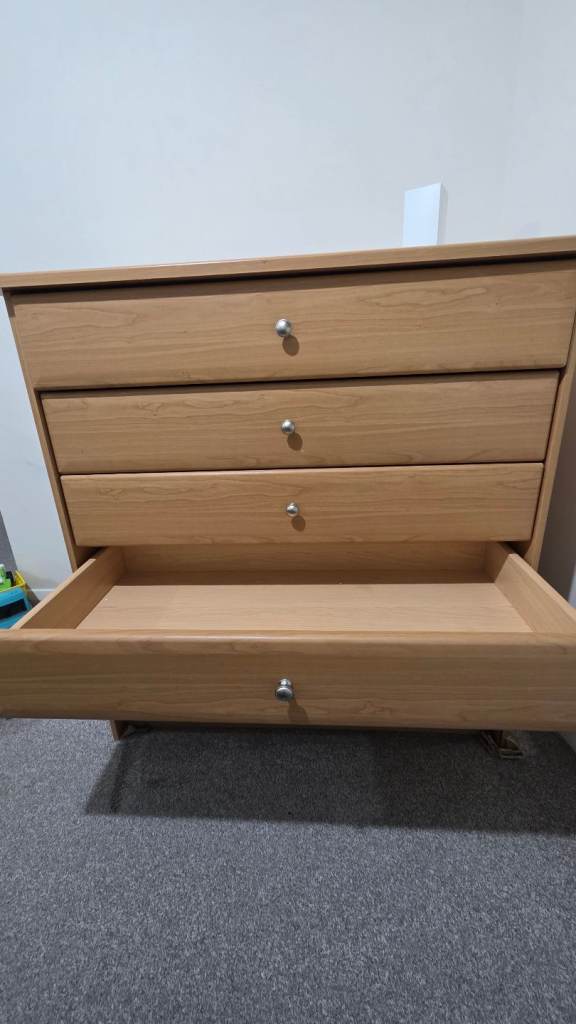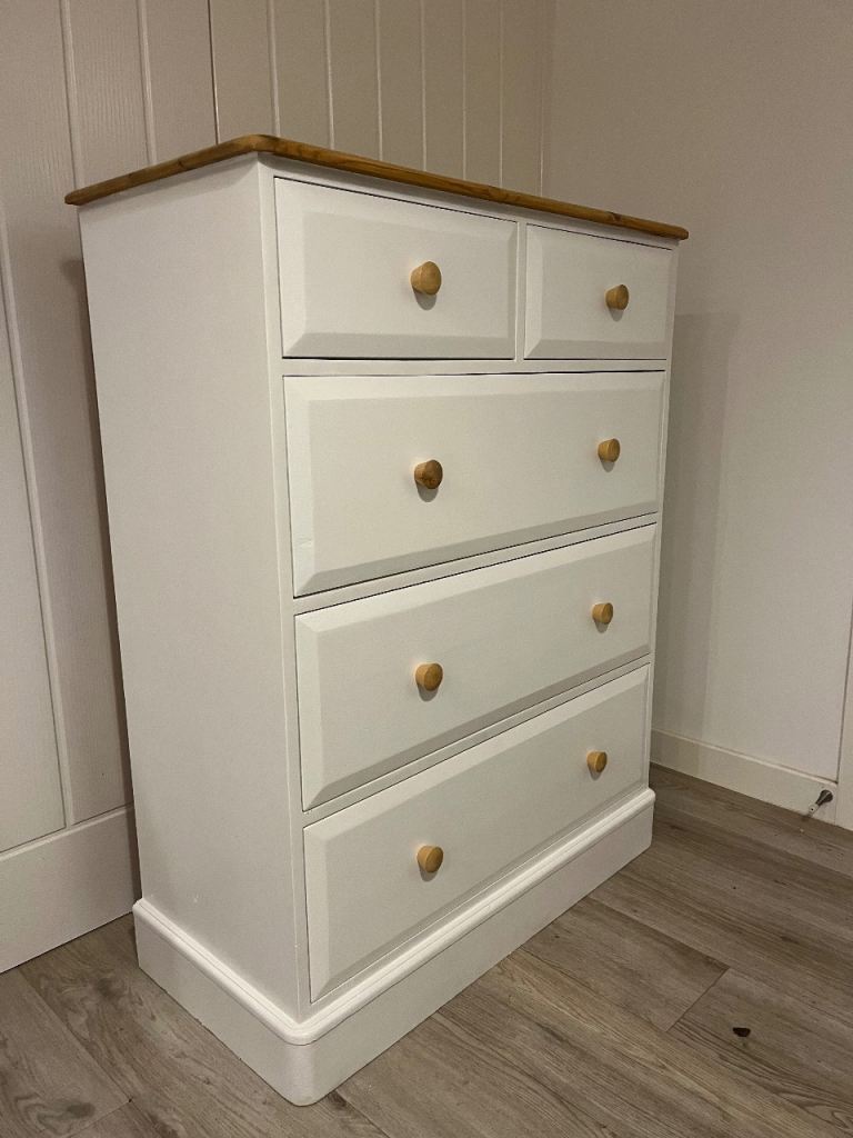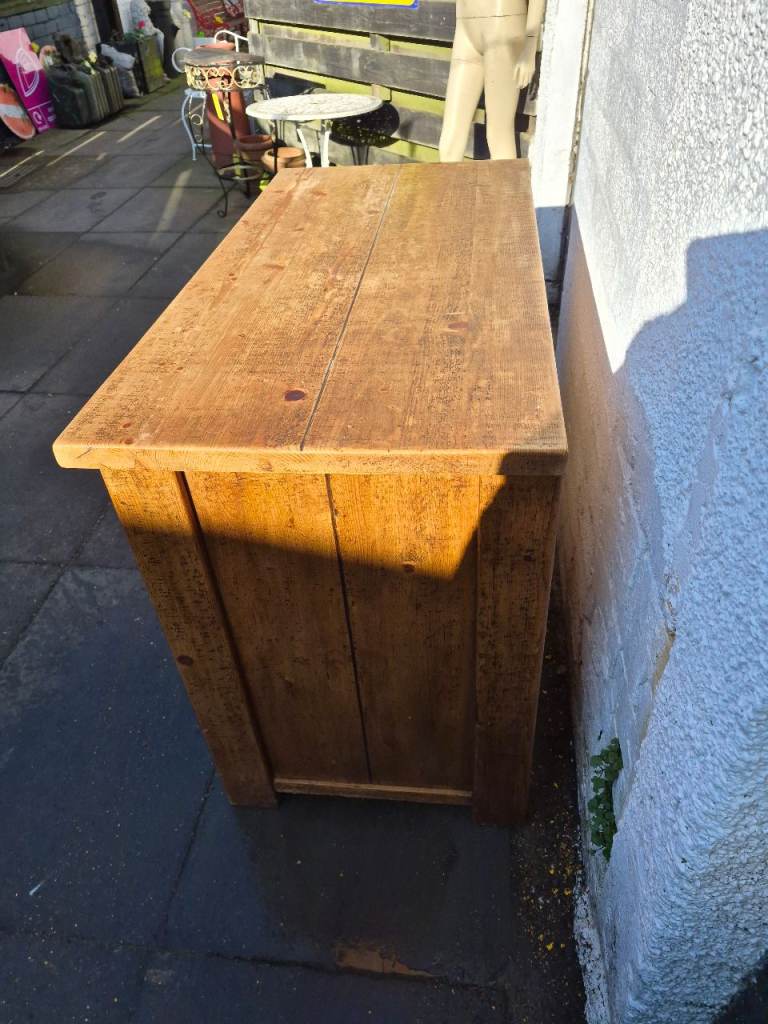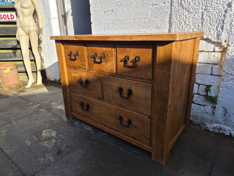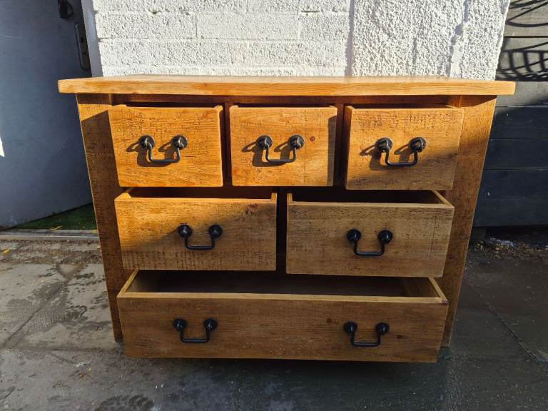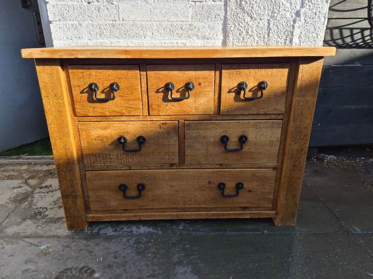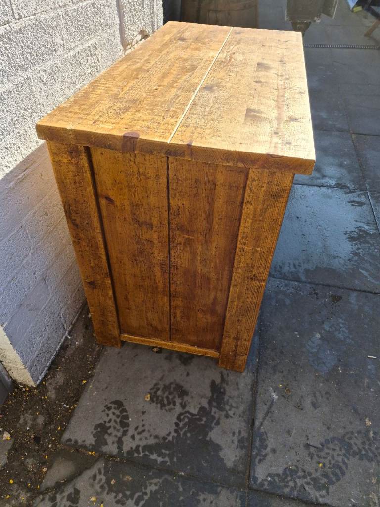 Solid wooden rustic chest of drawers in perfect condition just been freshly polished..length 1220..depth 610..height 880..delivery available 275.