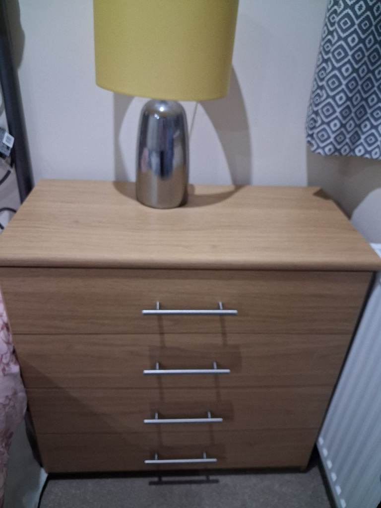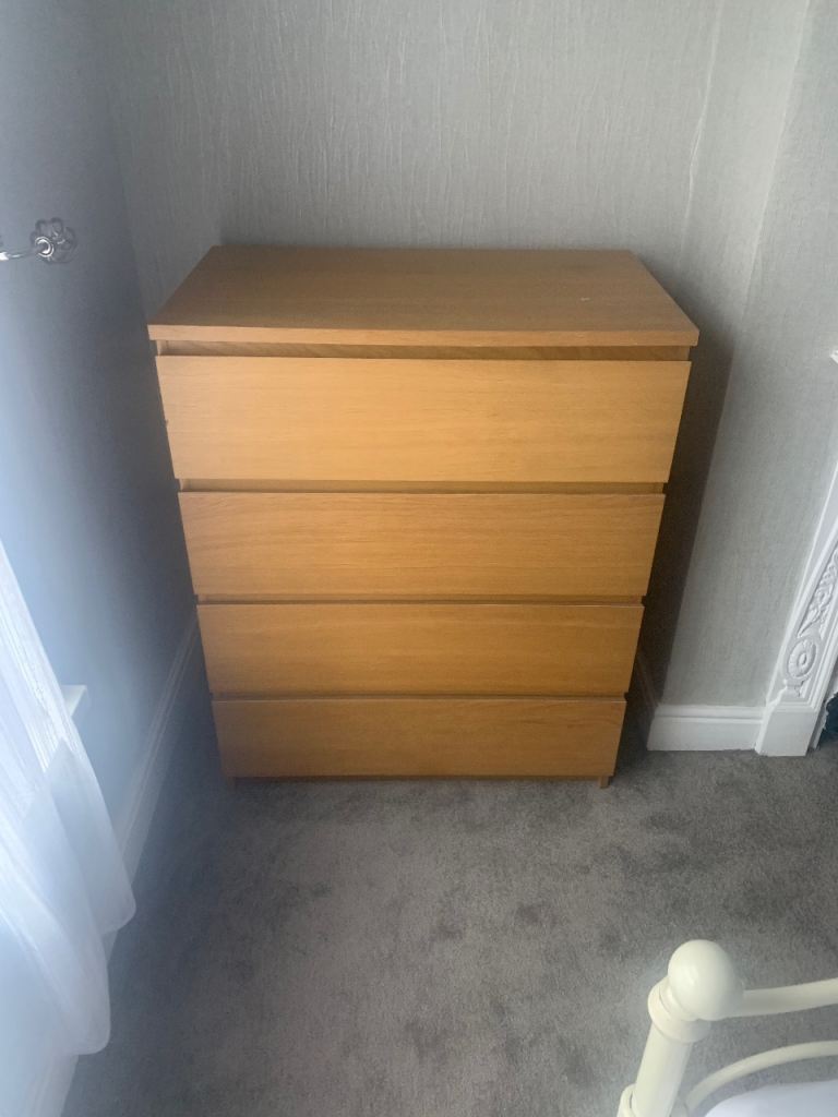 Details: Solid wood construction, smooth-sliding drawers, and turned bun feet.