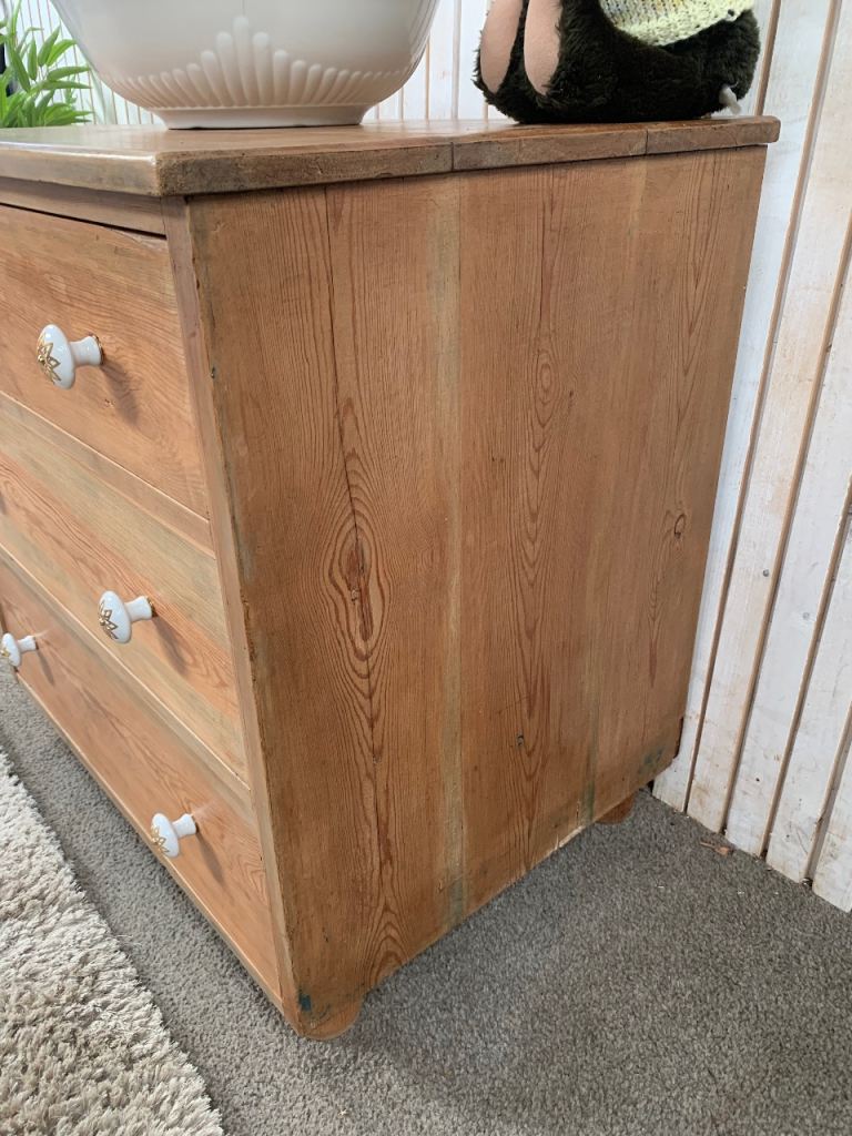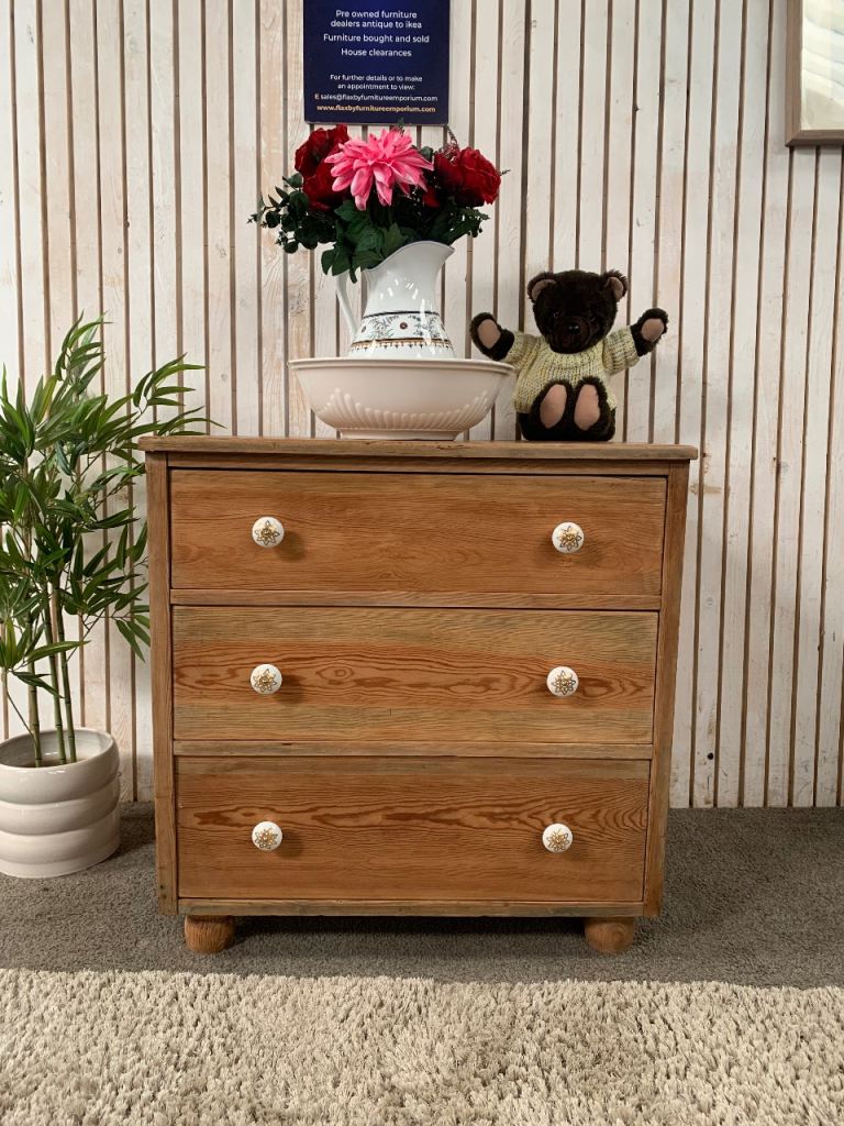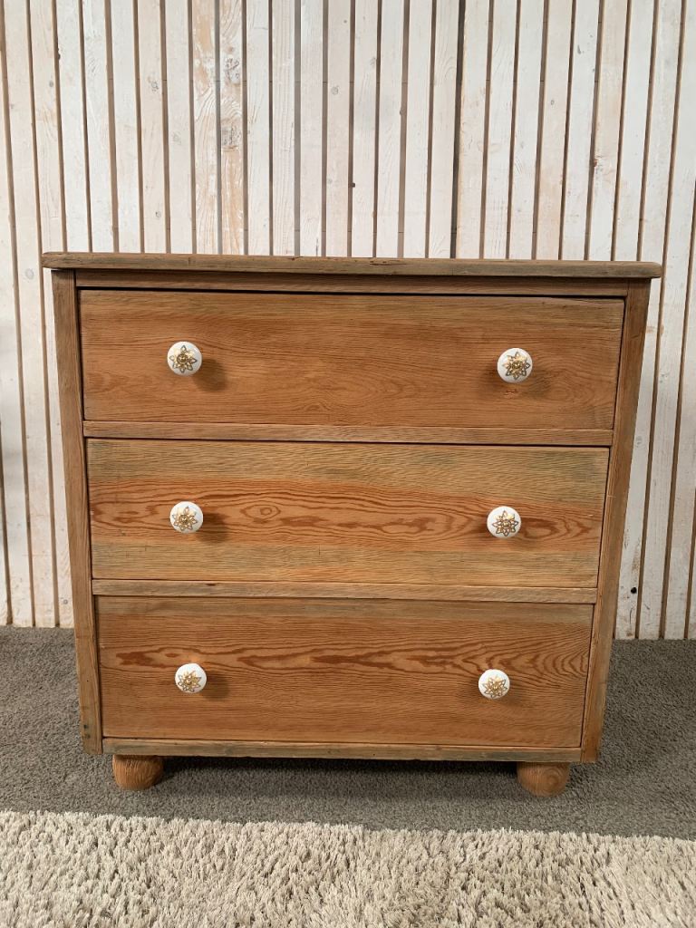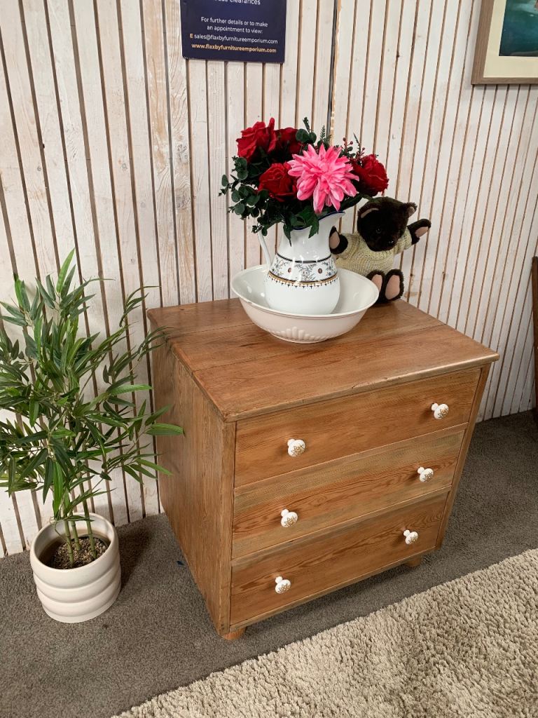 Rustic Reclaimed Pine Chest of Drawers 3 Drawer Dresser Ceramic Knobs Wood Unit.