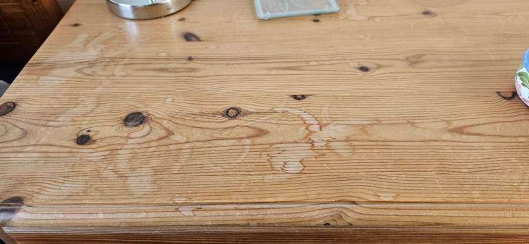 Water marks on the top, but can be sanded out.