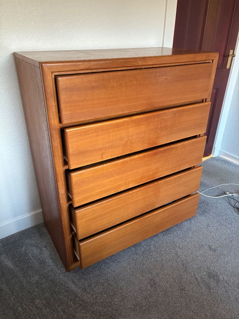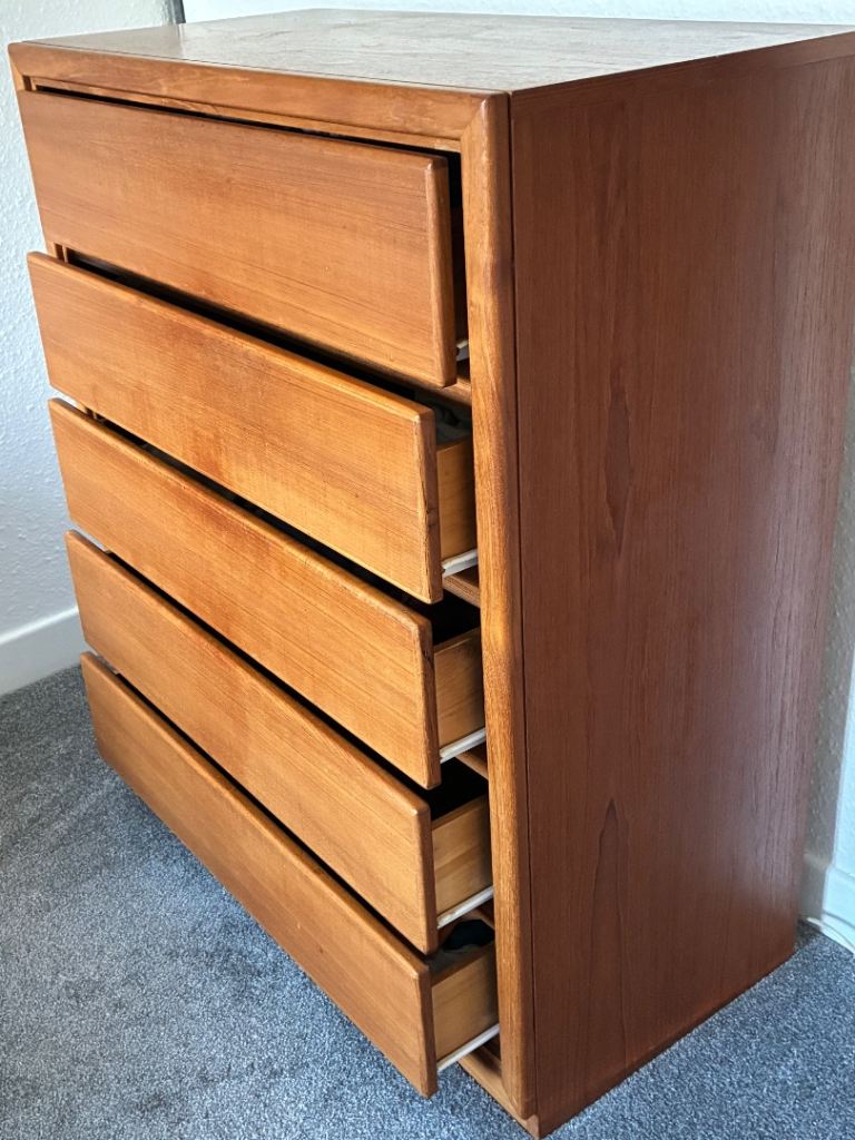 Posting for 5+ yearsSolid teak 5 drawer chest of drawers