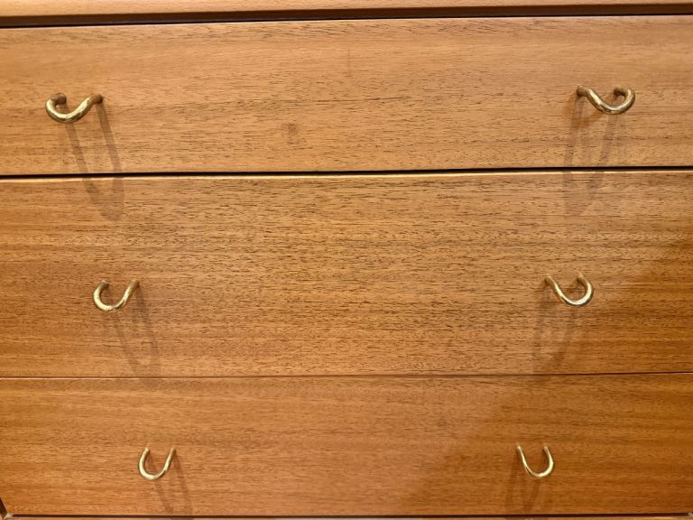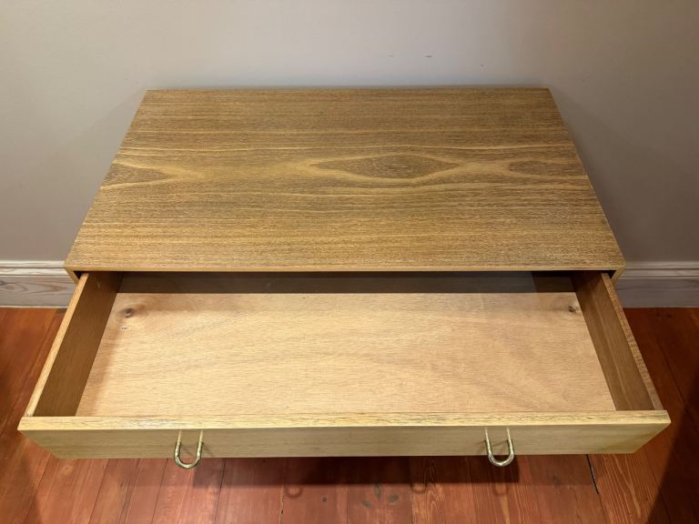 Featuring distinct brass handles and oak veneers, this piece has a true modernist aesthetic, way ahead of its time!