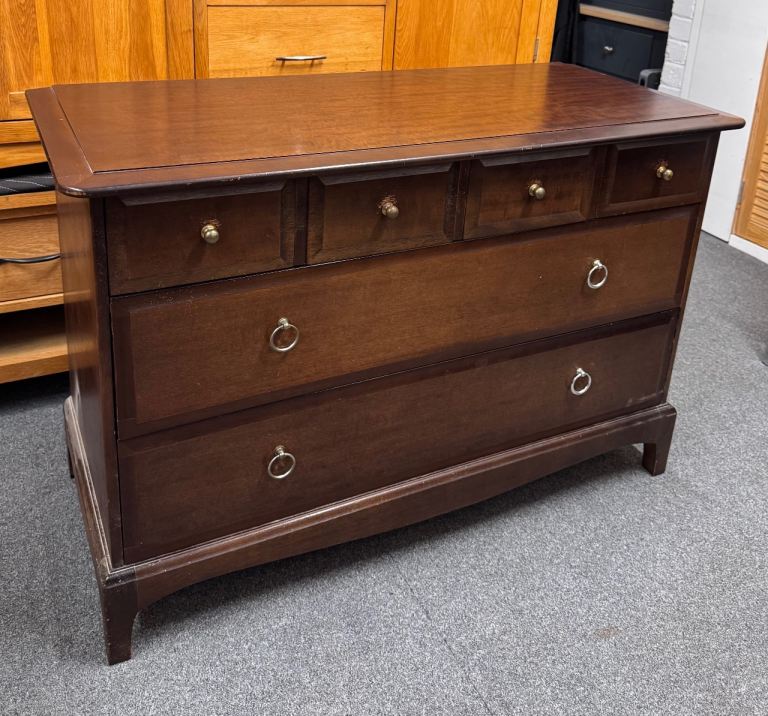 Stag Minstrel ‘4 over 2’ chest of drawers in good used condition. Could be painted/renovated if desired.