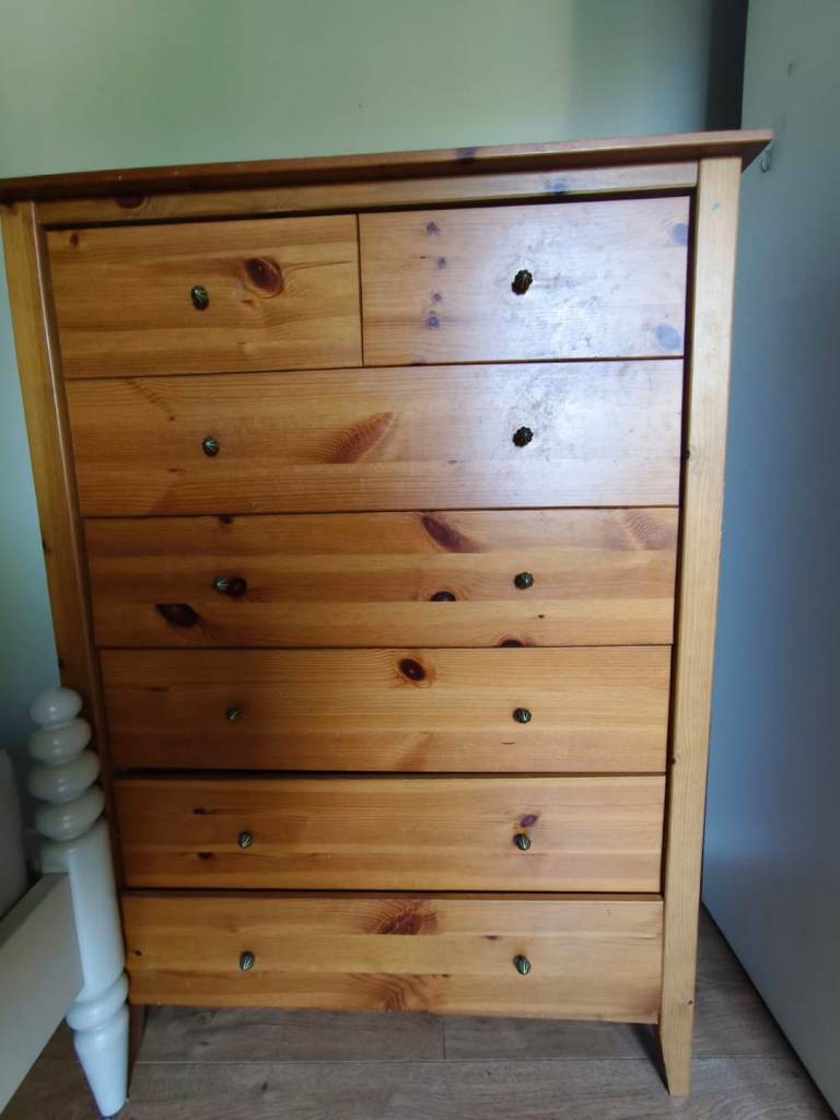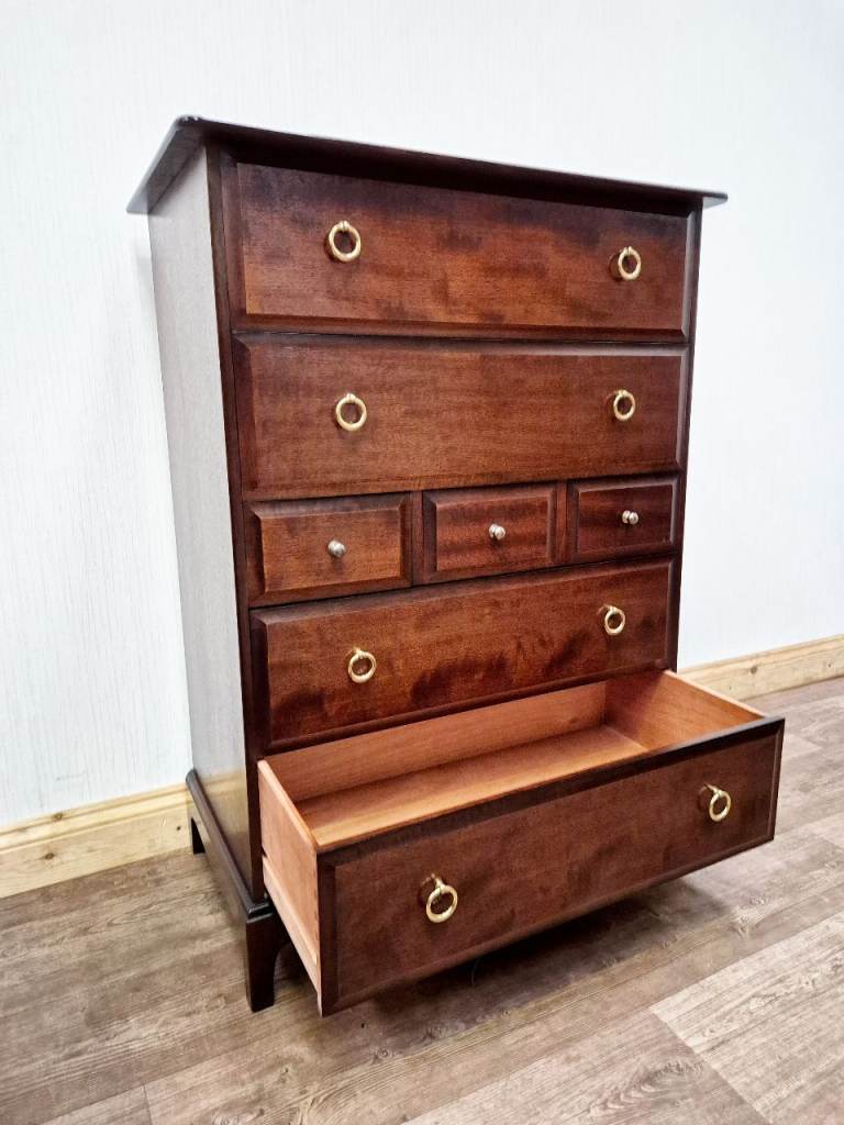 Stag Minstrel Chest Drawers Tallboy Dresser Dressing 7 Drawer Used Furniture Second Hand Preloved