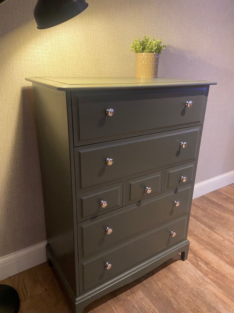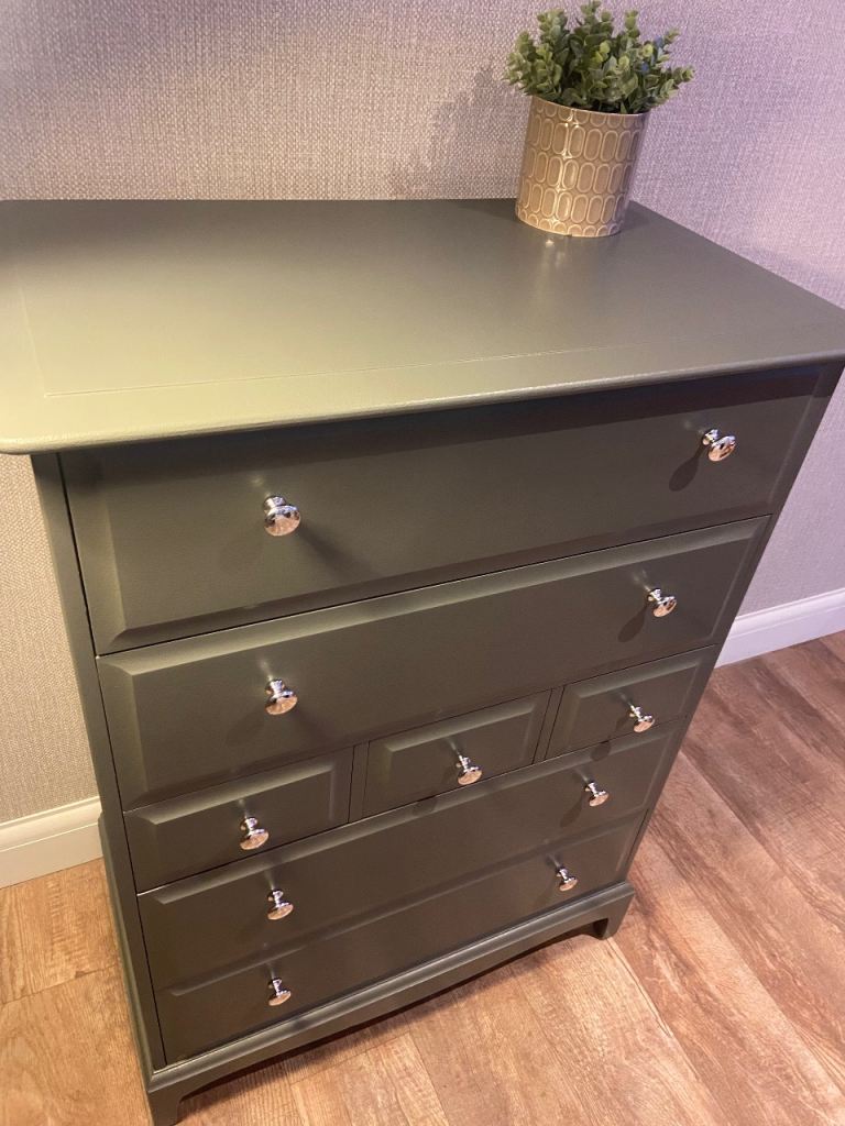 Beautiful stag tall boy painted in little Greene Pompeian ash, I have 3 of these available