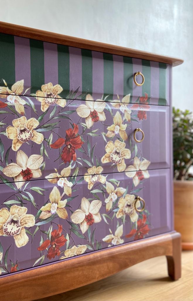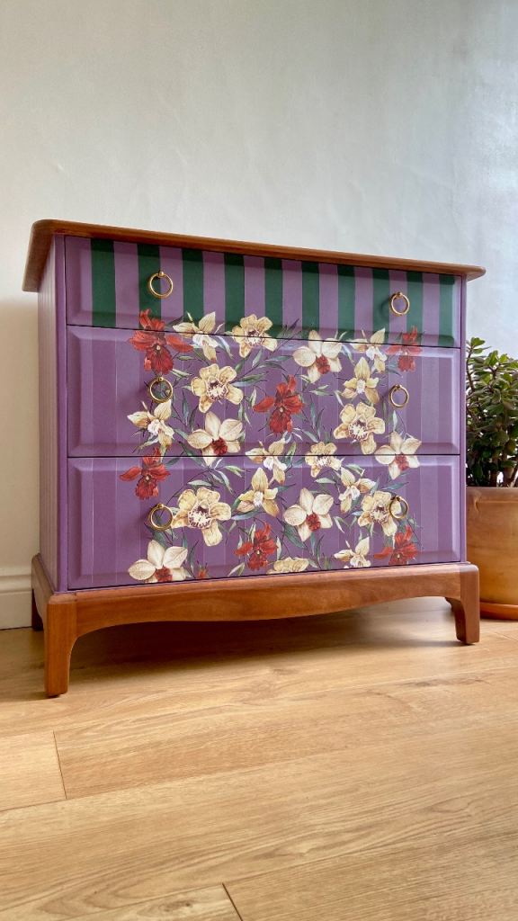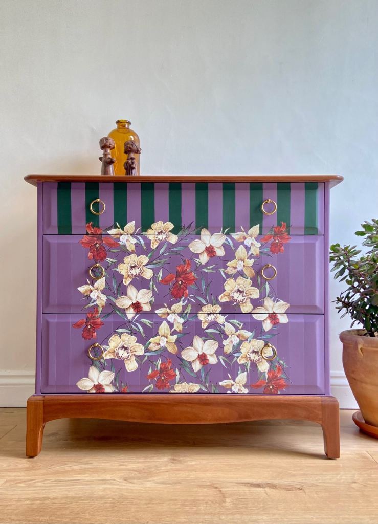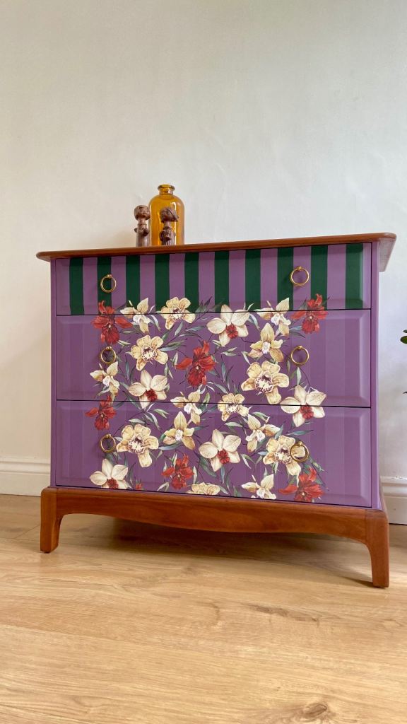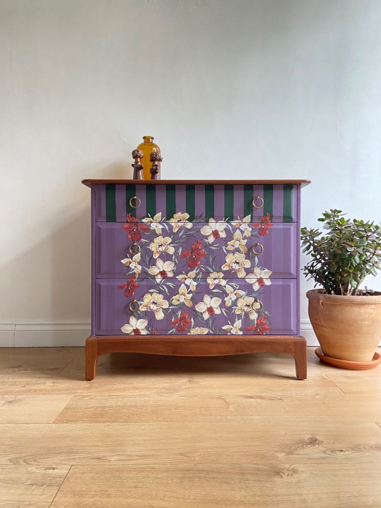 Professionally upcycled Stag Minstrel 3-drawer chest. A high-quality, bespoke statement piece.