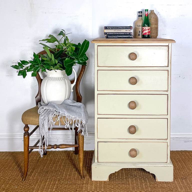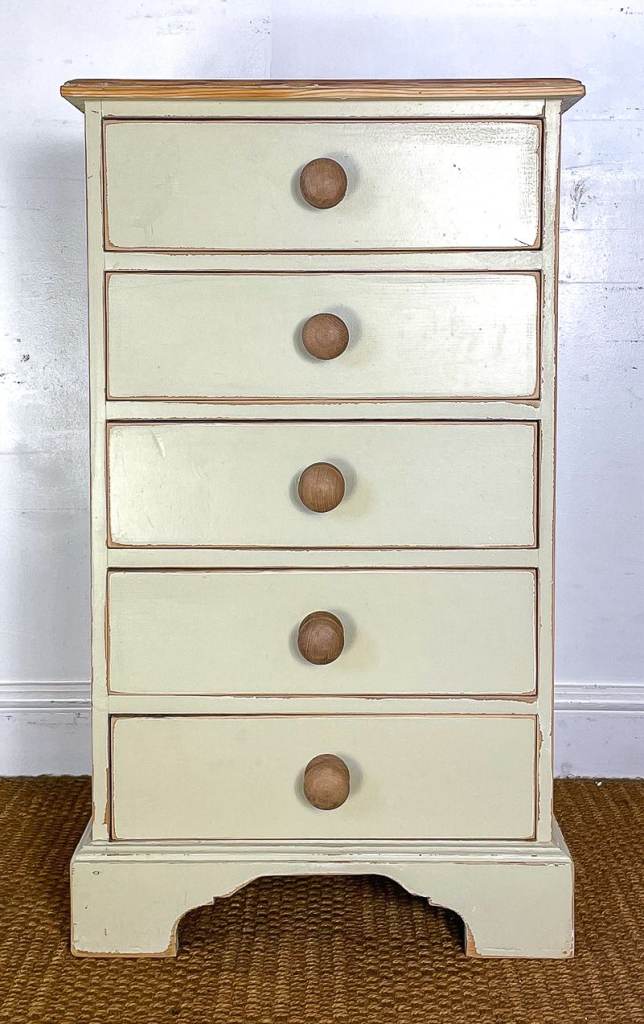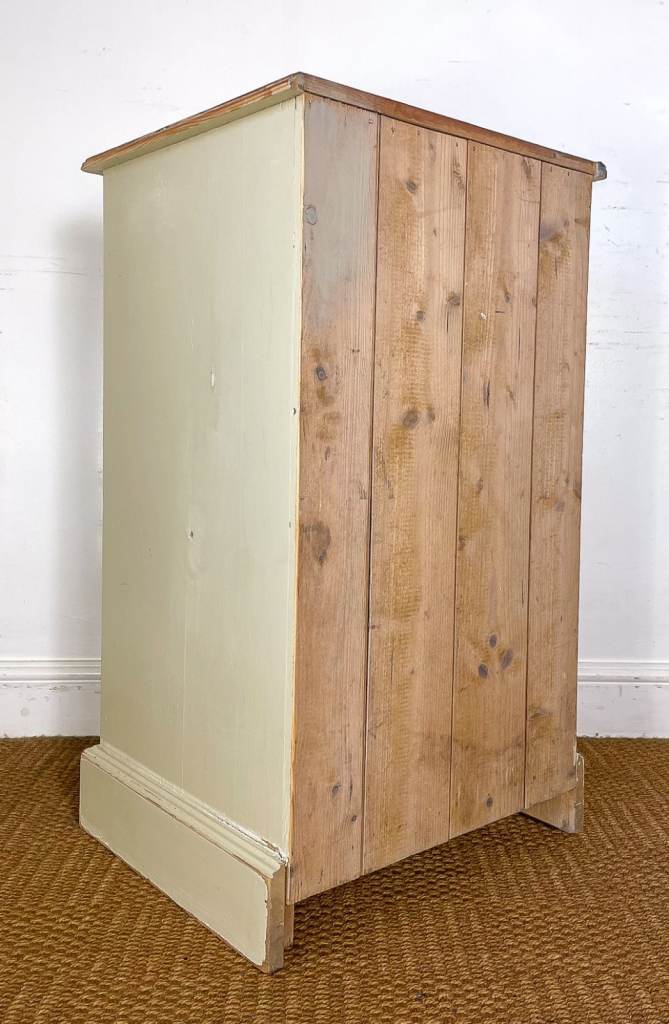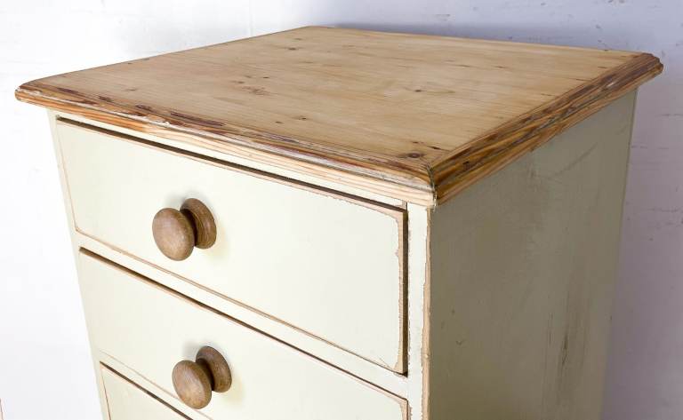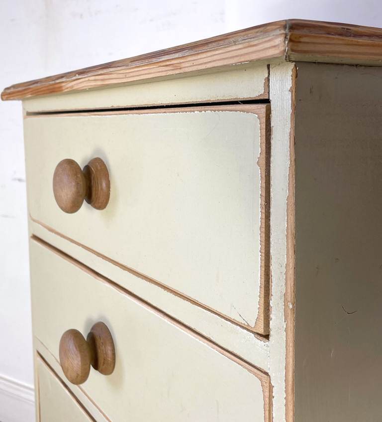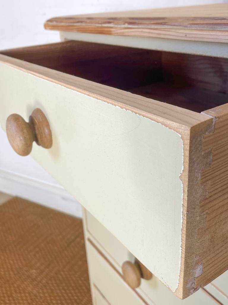 Vintage antique pitch pine tallboy chest of drawers lightly distressed shabby chic cream
