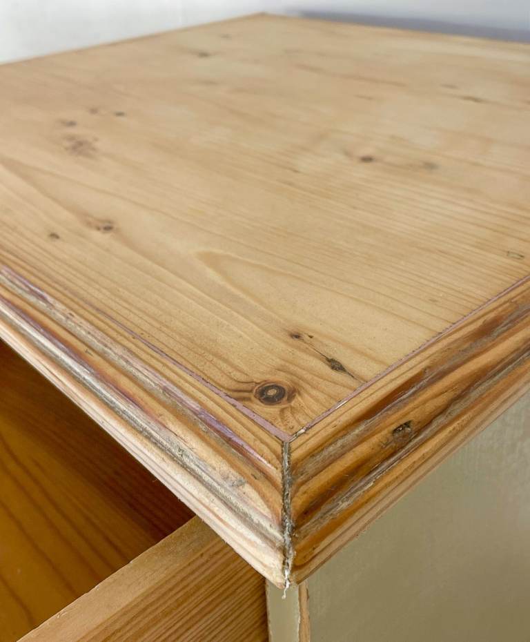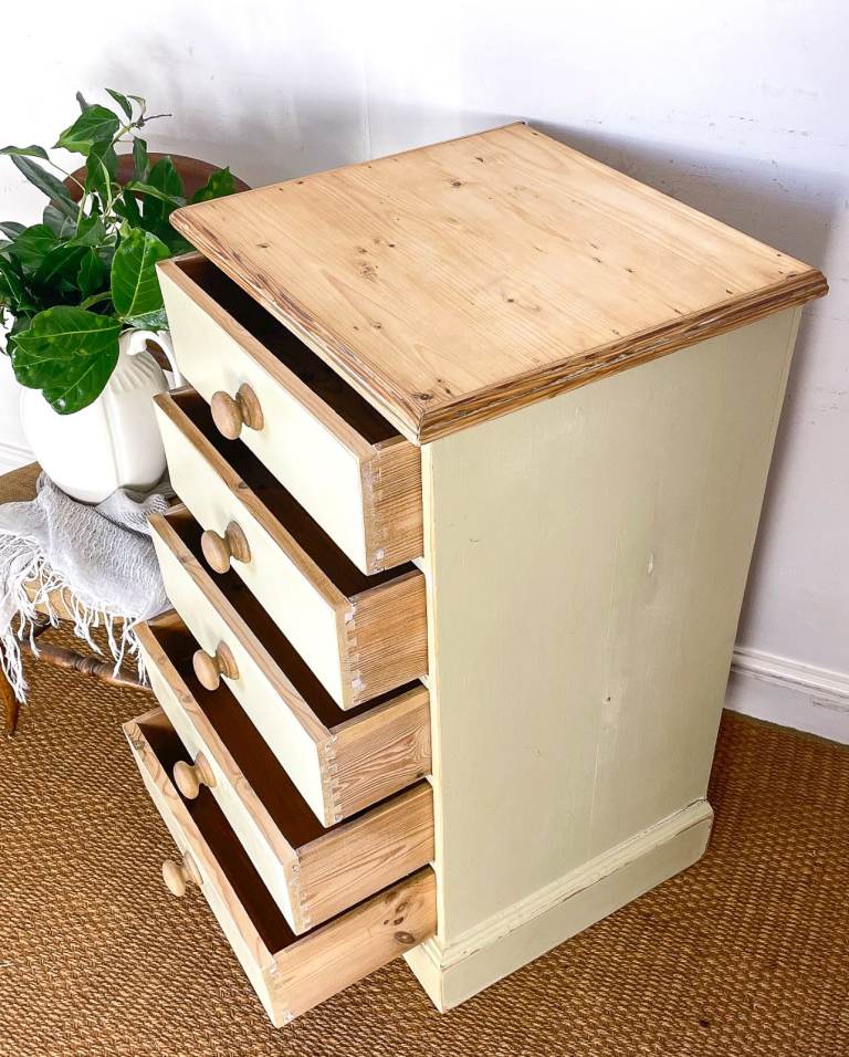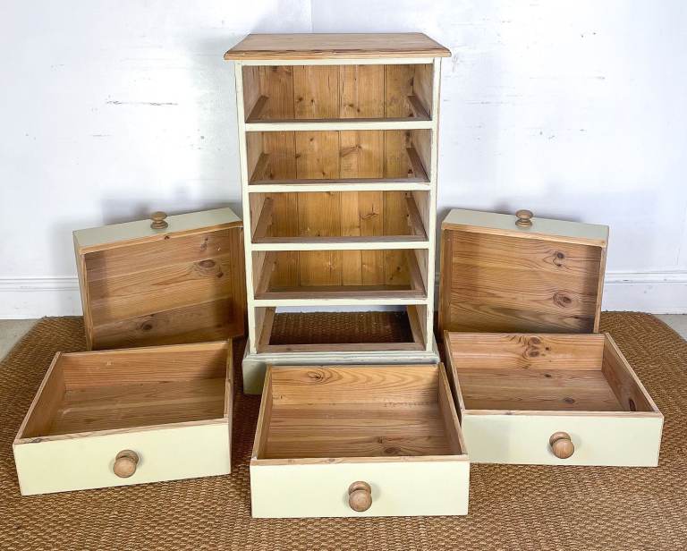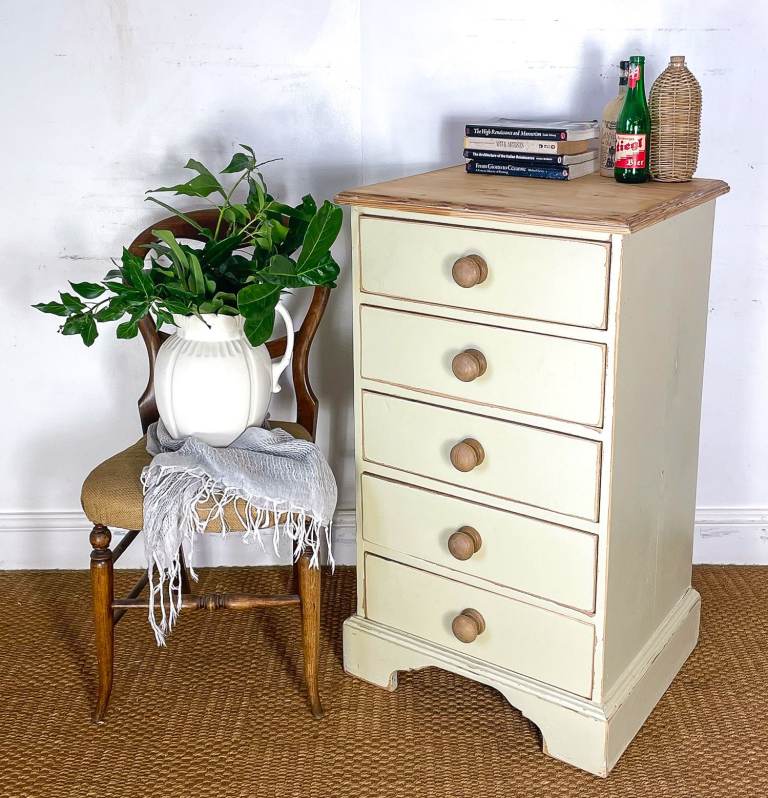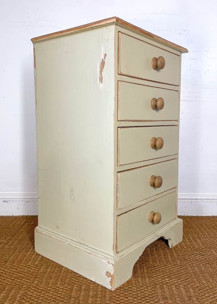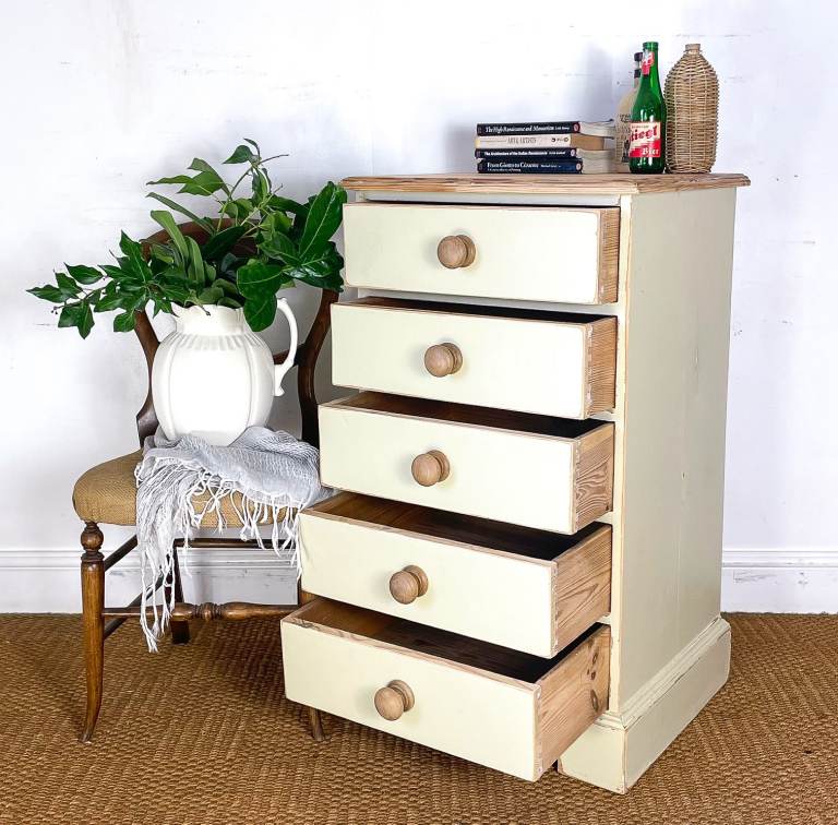 Vintage antique pitch pine tallboy chest of drawers lightly distressed shabby chic cream