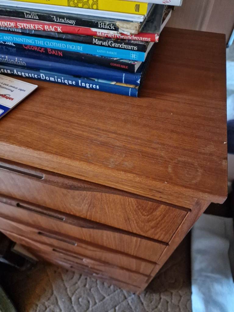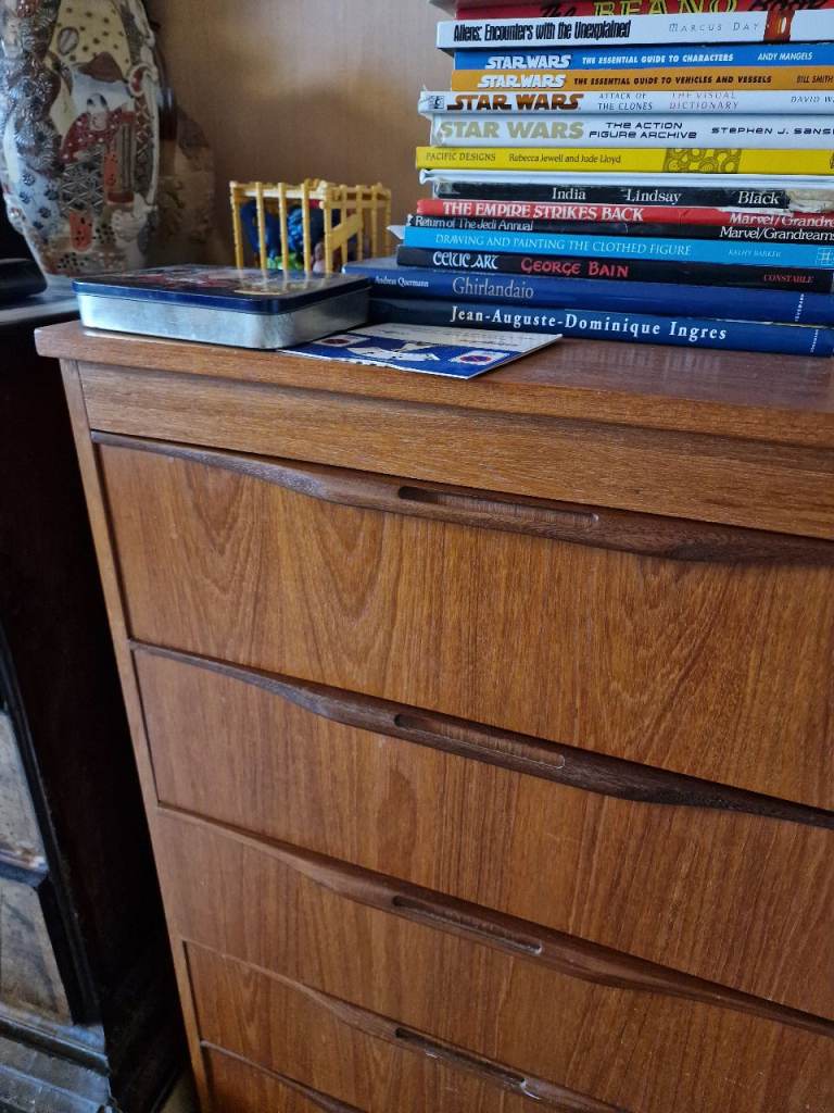 Vintage mid century modern G Plan style teak Tallboy chest of drawers by JS Sakol. In excellent condition, all 6 drawers work well. Will be emptied for collection. You will probably need 2 people to collect this.