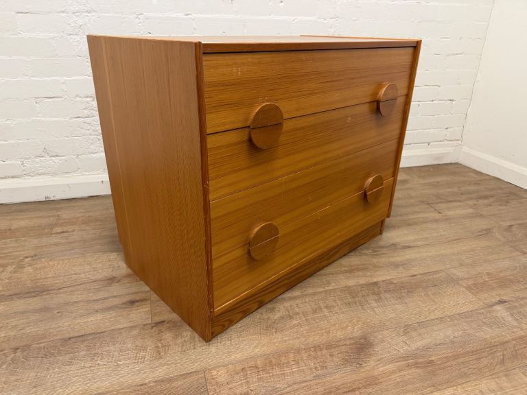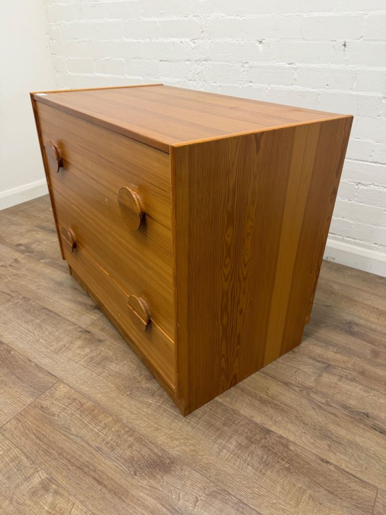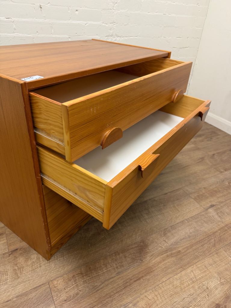 Vintage pine 4 drawer chest of drawers. Nice vintage design and shape. Good solid frame. 4 large storage drawers.