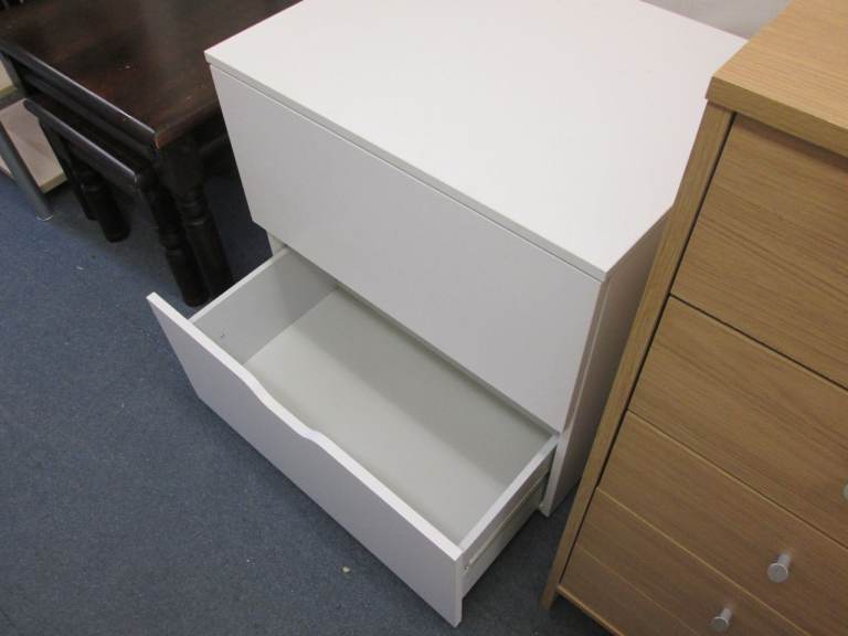 WHITE 2-DEEP DRAWER UNIT - 65cm wide x 50cm deep x 54cm high - at HAVEN TRUST CHARITY SHOP at 247 Radford Road, Hyson Green, NG7 5GU. Local delivery £10 - send postcode to check. Shop open 10am-4.30pm Tuesday-Saturday. ALWAYS CHECK WE'RE AT THE SHOP BEFORE VISITING IN CASE WE'RE OUT ON A LOCAL DELIVERY - phone or message. Payment accepted in cash or by transfer.
