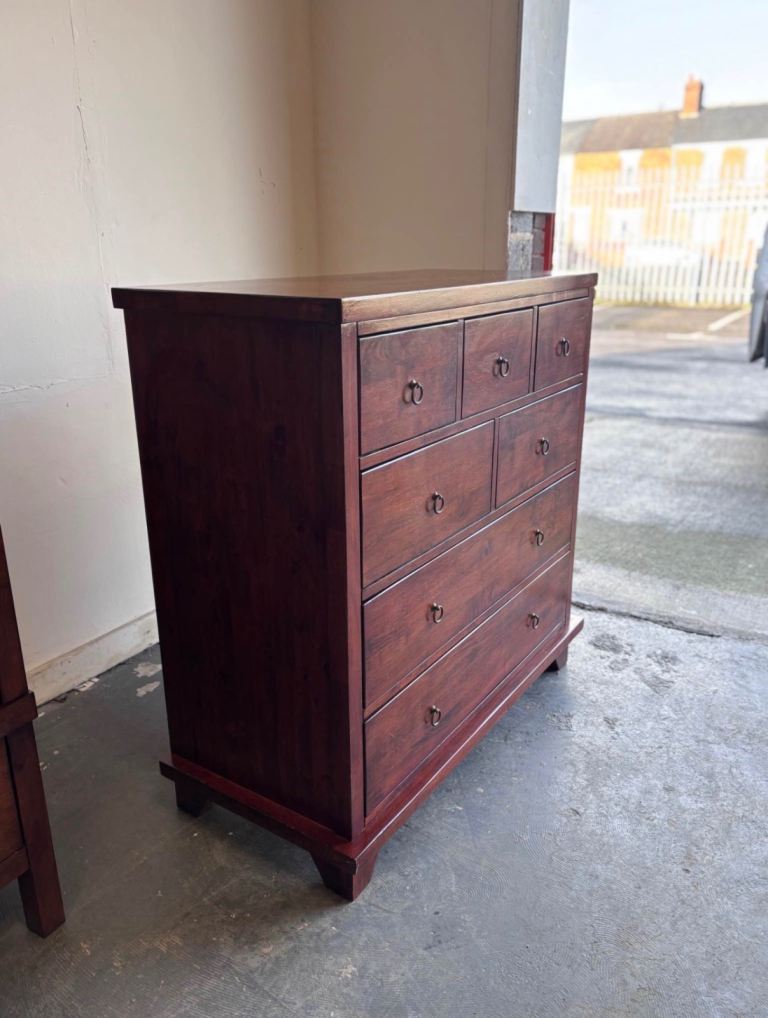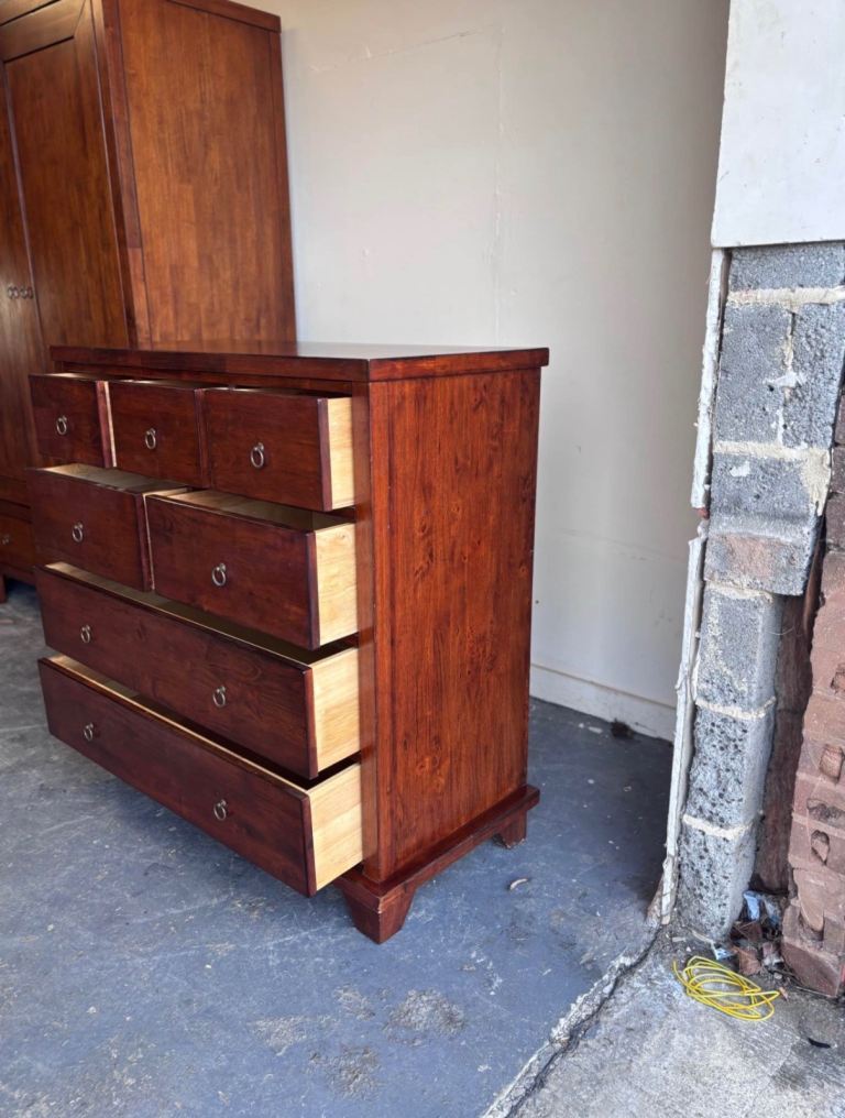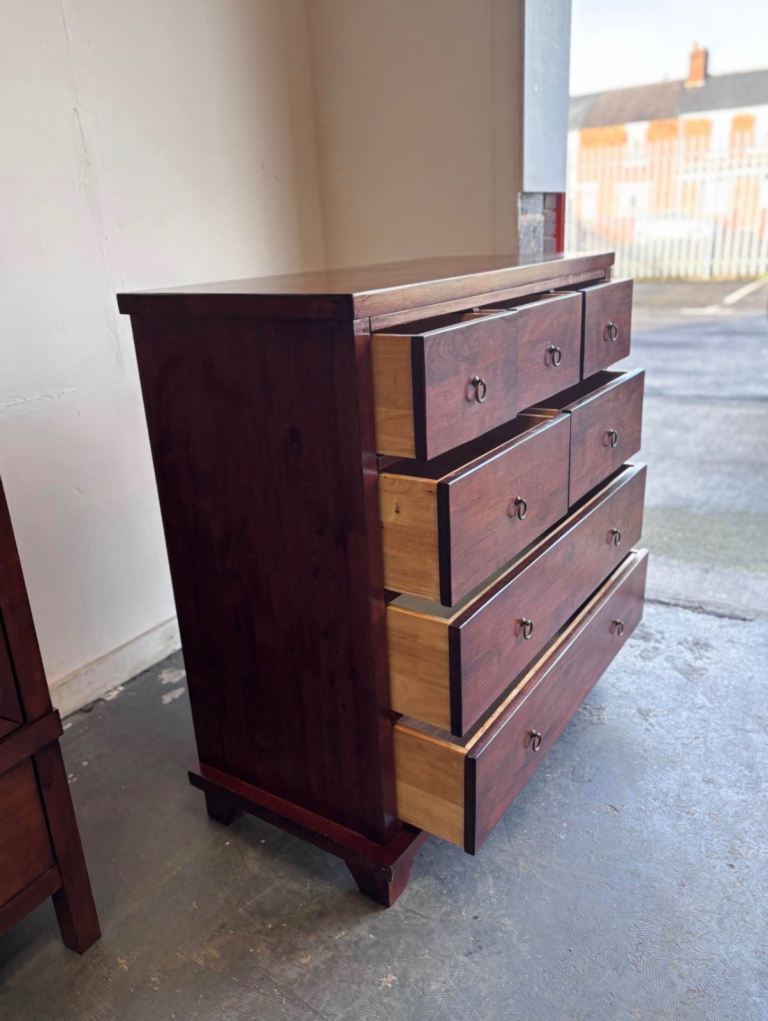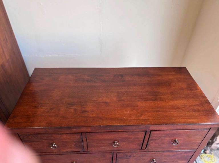 In good condition ! Few usage marks as expected from a used item ! Doesn’t distract from the quality of these drawers !
